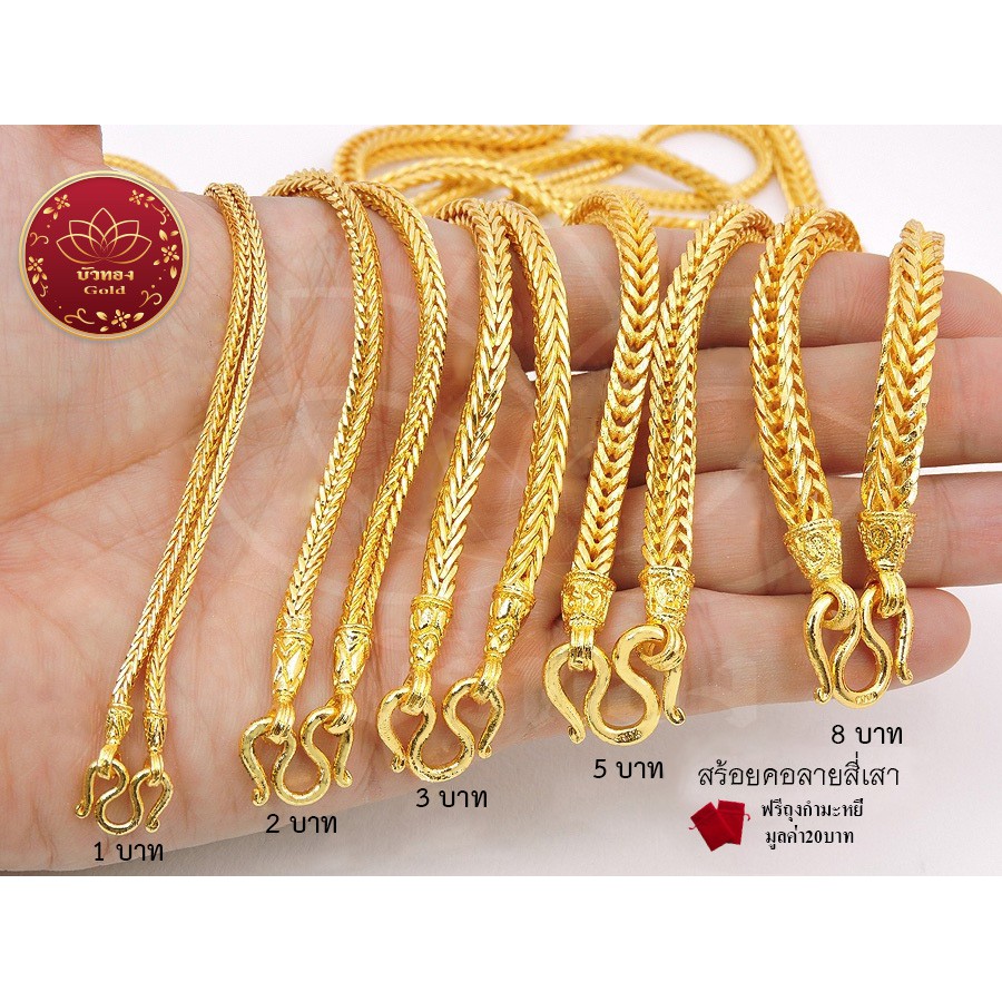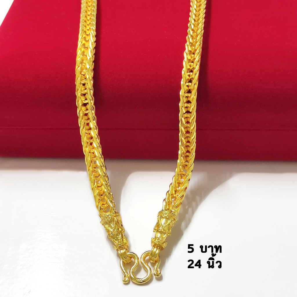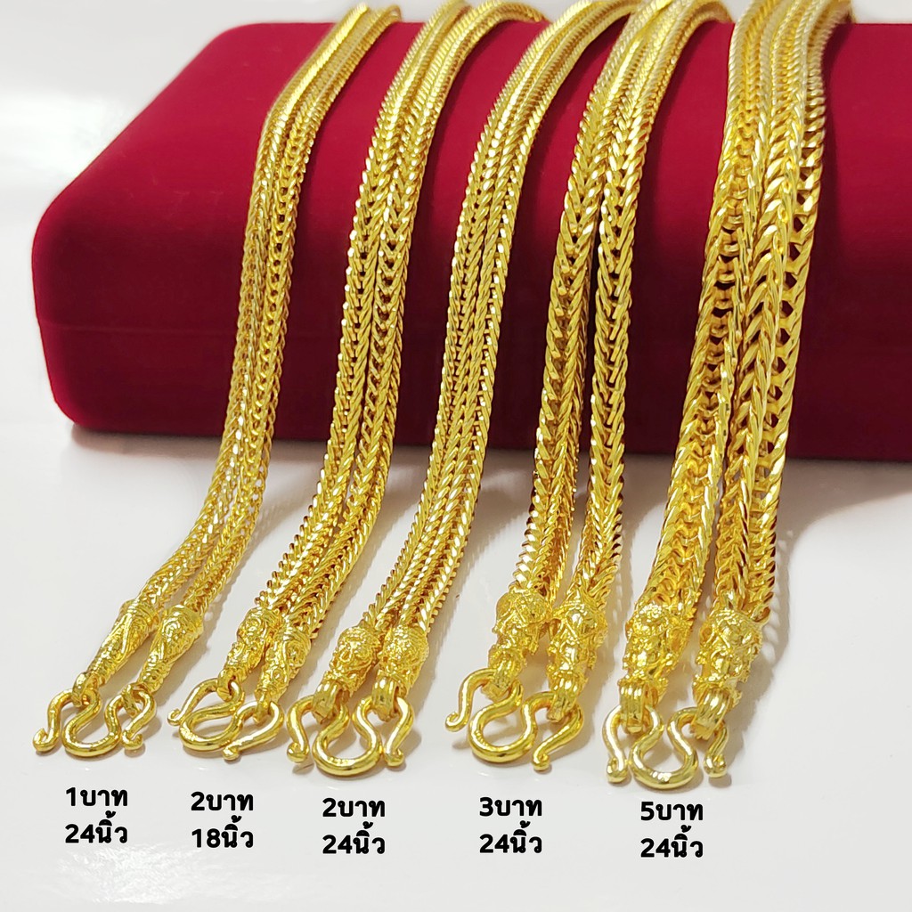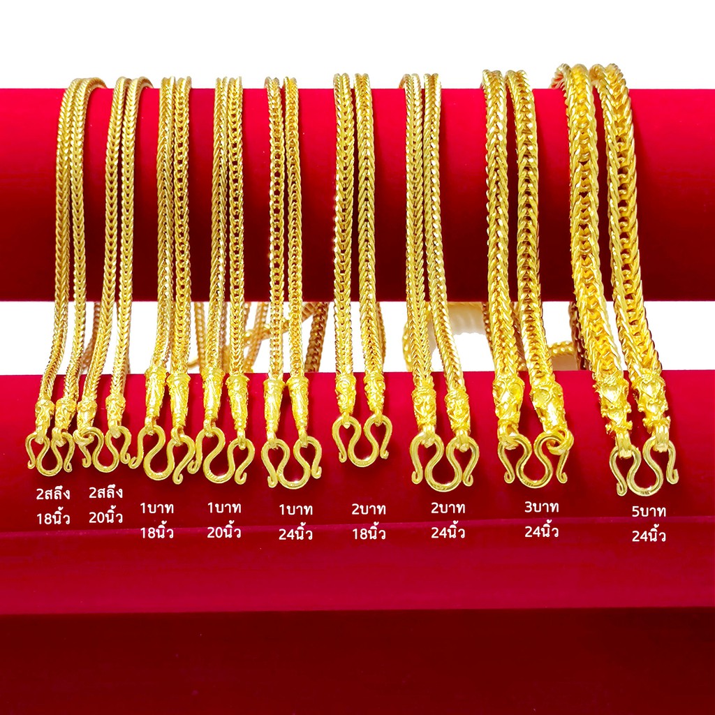 TG001 สร้อยคอทอง ลายสี่เสาเคลือบเงา 24 นิ้ว ทองไมครอนโคลนนิ่ง สีสวยเหมือนจริง