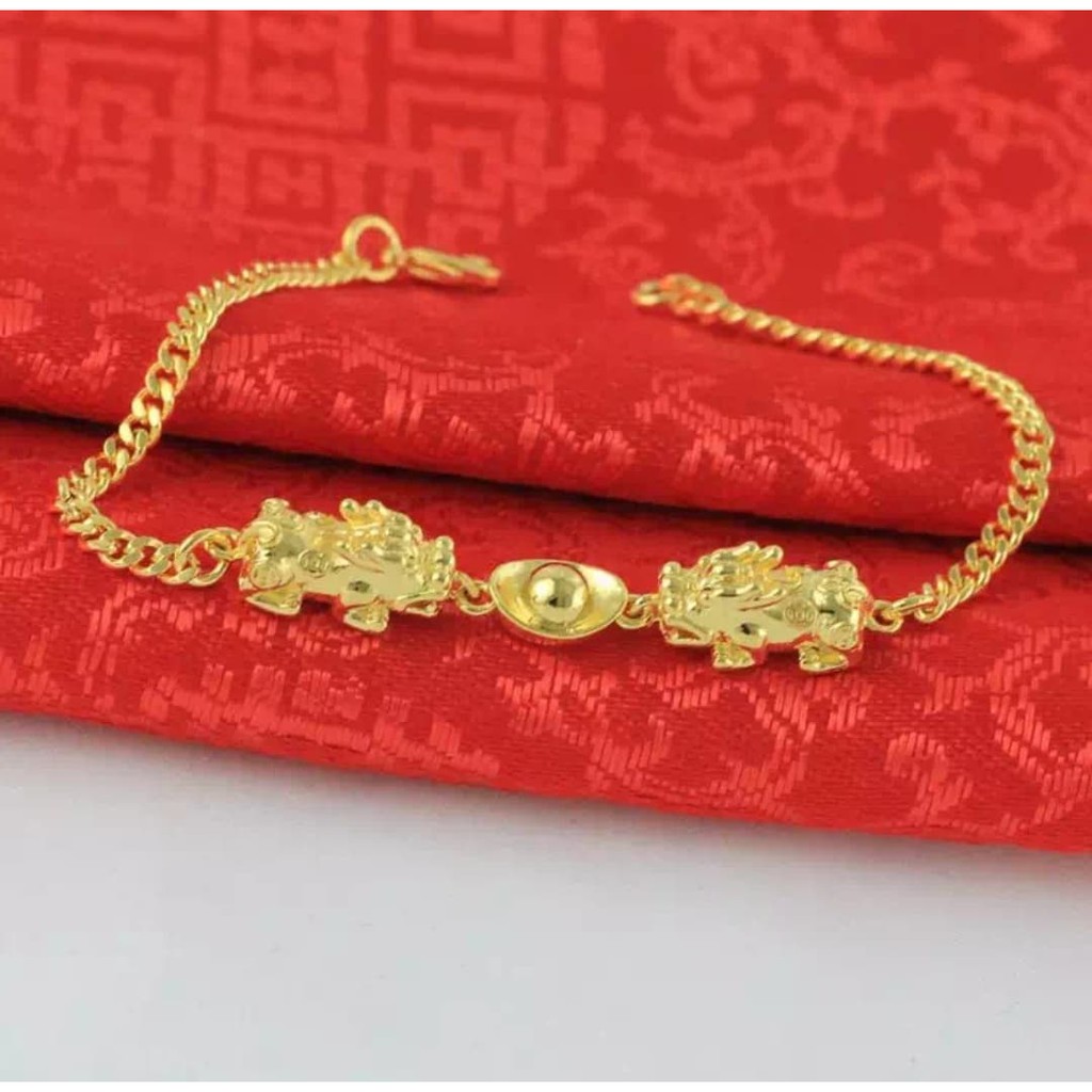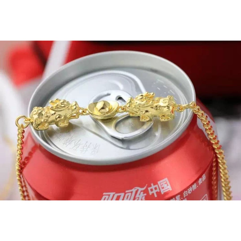SL001 สร้อยข้อมือปี่เซียะคู่ ค้าขายเรียกทรัพย์ แก้ชง ทองไมครอน ปลุกเสกแล้ว🇭🇰ฮ่องกง🇭🇰