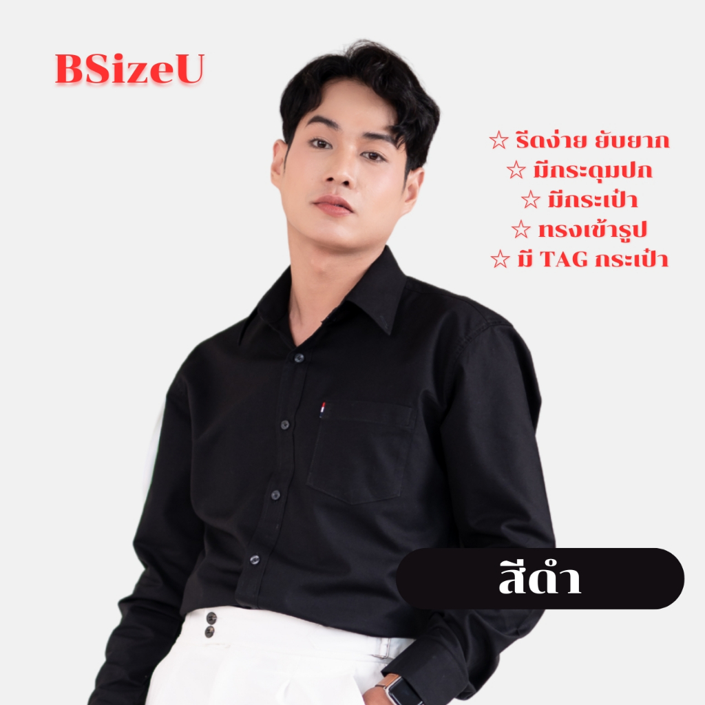 เสื้อเชิ้ตคอปกแขนยาว ผ้า Premium Oxford By BSizeU ทรงเข้ารูป รีดง่าย ยับยาก ยิ่งซักยิ่งนิ่ม