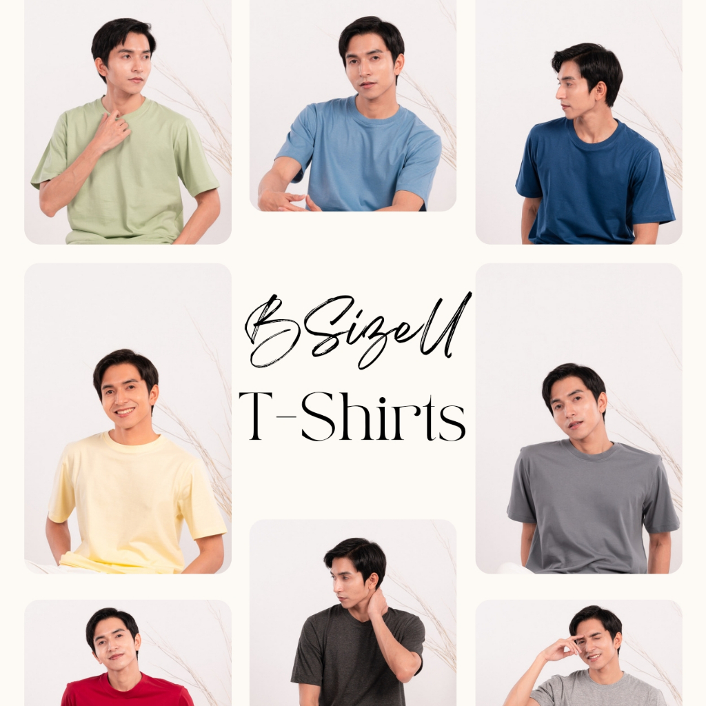 เสื้อยืดคอกลม Premium Cotton 100% แบรนด์ BSizeU ระบายอากาศดี ไม่ขึ้นขน 19 สี Set 1