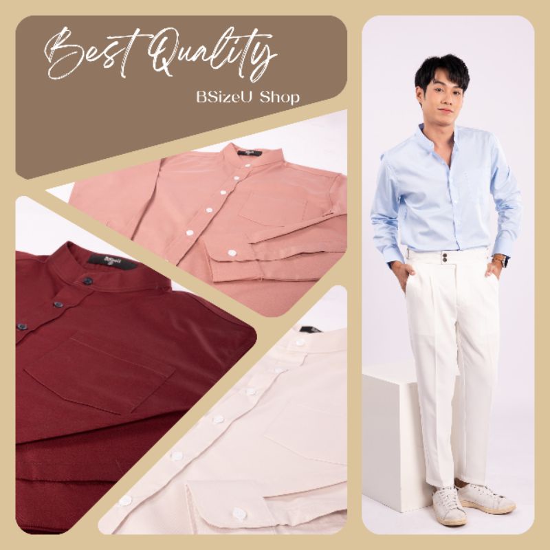 เสื้อเชิ้ตสีดำ เสื้อเชิ้ตคอจีนแขนยาว ผ้า Premium Comb Twill by BSizeU ทรงเข้ารูป รีดง่าย ยับยาก ยิ่งซักยิ่งนิ่ม