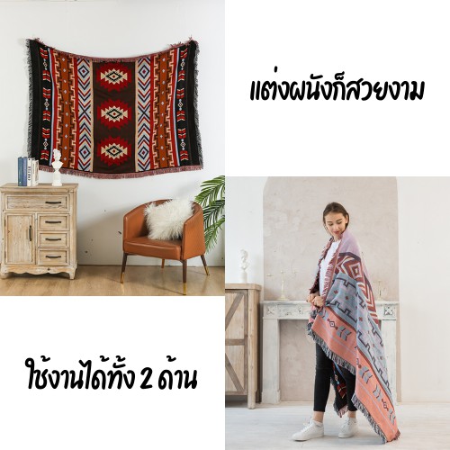 ⛺️พร้อมส่ง⛺️ พรมผ้าทอโบฮีเมียน เสื่อแคมป์ปิ้ง Camping ผ้าคลุมโซฟา สไตล์วินเทจ