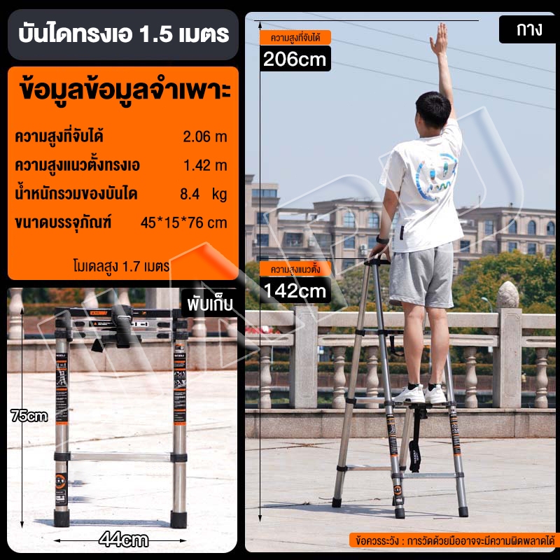 JIAPU (สแตนเลส) บันไดอลูมิเนียม บันไดช่าง บันไดอลูมิเนียมพับได้ รับน้ำหนักได้ 150 กิโลกรัม แข็งแรง บันไดมัลติฟังชั่นบัน