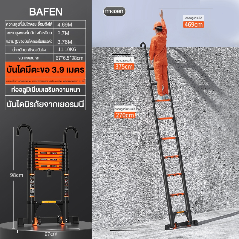 JIAPU บันไดมัลติฟังชั่น บันไดพับได้อลูมิเนียม รับน้ำหนักได้ 1500กิโลกรัม บันไดพับได้หลากหล