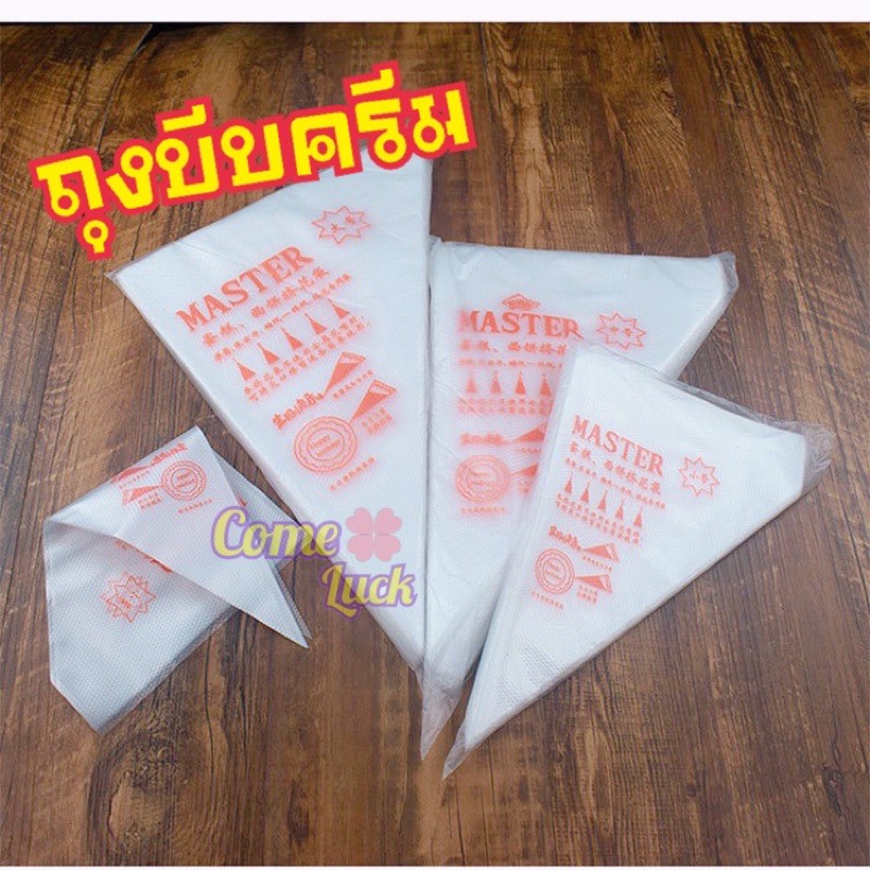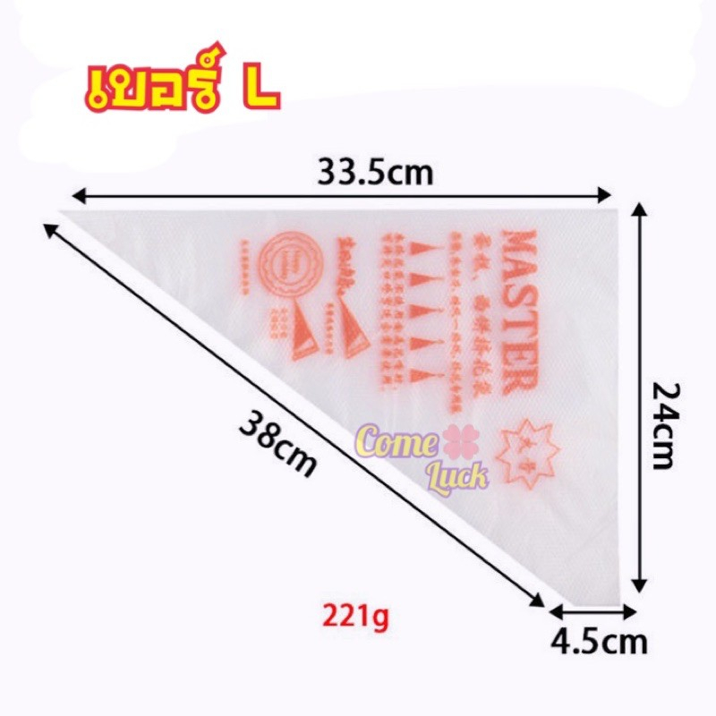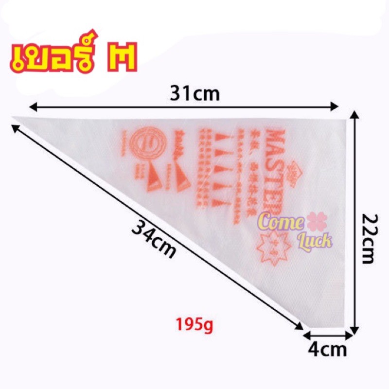 ถุงบีบครีมสำหรับแต่งหน้าเค้ก บีบครีมลายเส้น แพคประมาณ100ใบ S,M,L