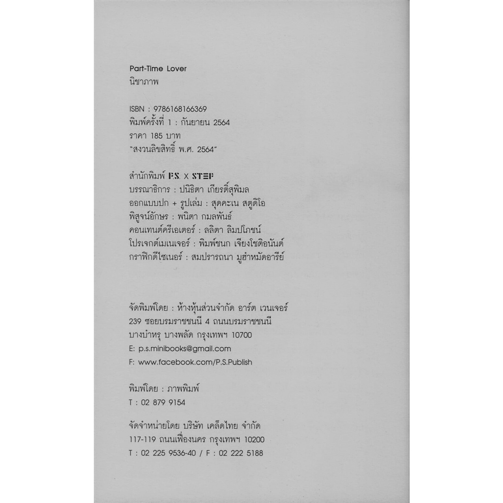 Part-Time Lover รวมเรื่องสั้น โดย นิชาภาพ
