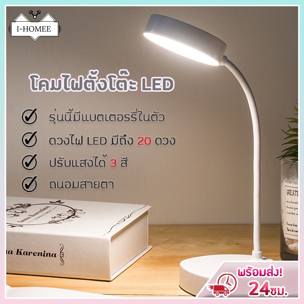 โคมไฟตั้งโต๊ะ ฐานกลม โคมไฟอ่านหนังสือ led ไฟมินิมอล ปรับแสงได้3สี หรี่แสงได้ มีแบตในตัว