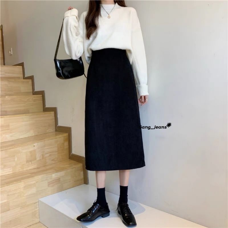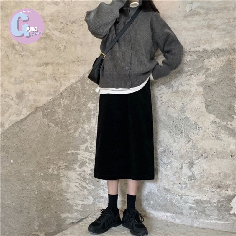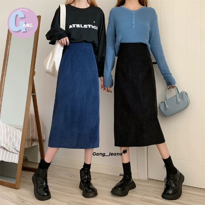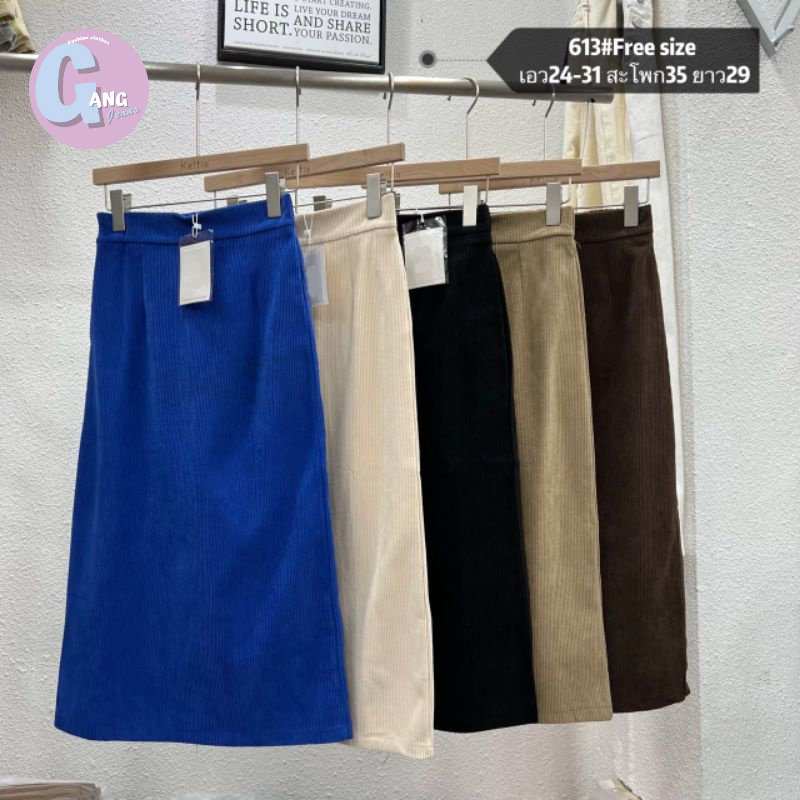 Gang_Jeans #613(K)กระโปรงยาวลูกฟูก ซิปหลังผ่าหลัง ผู้หญิง สไตล์เกาหลี ฟรีไซส์