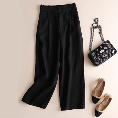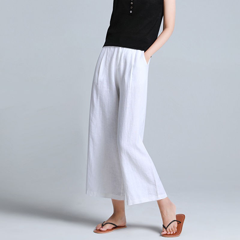 [พร้อมส่ง] กางเกงผ้าลินิน ขากว้าง สไตล์วินเทจ สำหรับสตรี