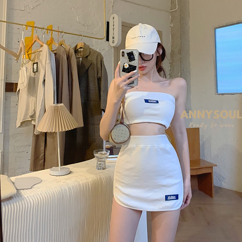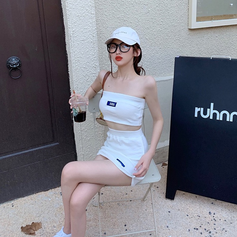 ชุดเซ็ต2ชิ้น งานเซ็กซี่ ใส่ไปปาร์ตี้ ชุดเข้าเว็ต เสื้อเกาะอก + กระโปรงสั้น โชว์ขาเรียวสวย เซ็กซี่ไม่ไหว
