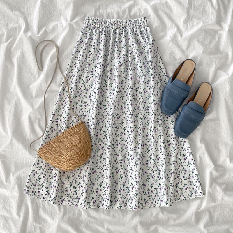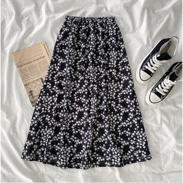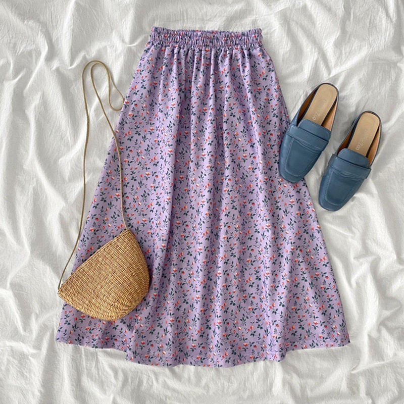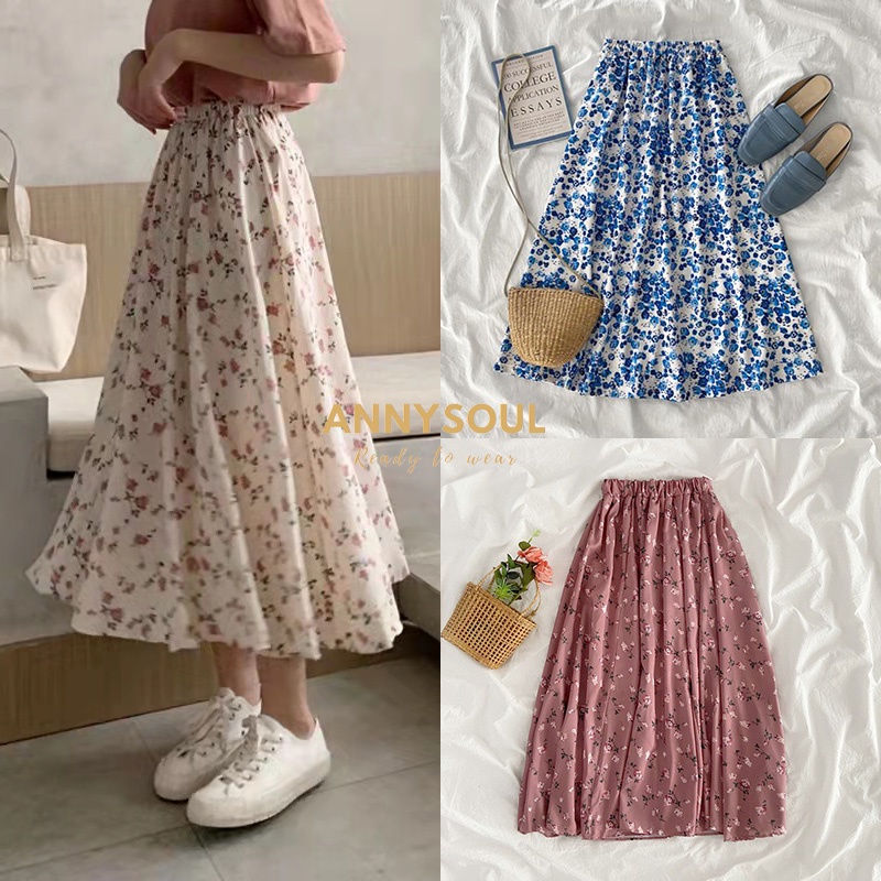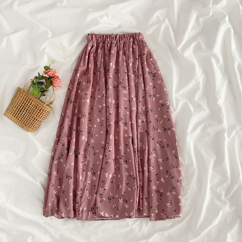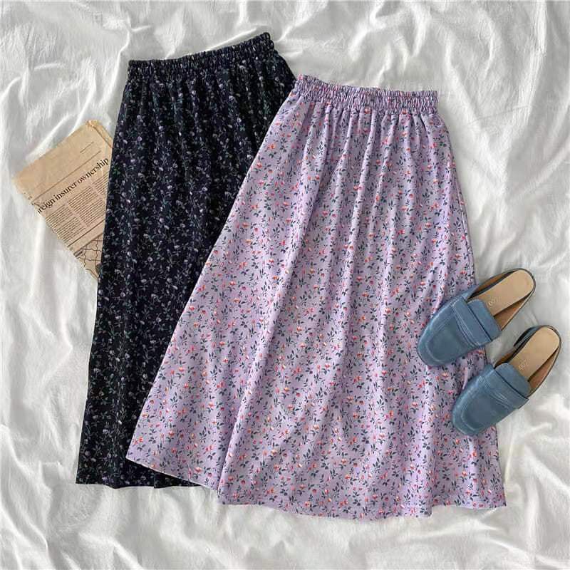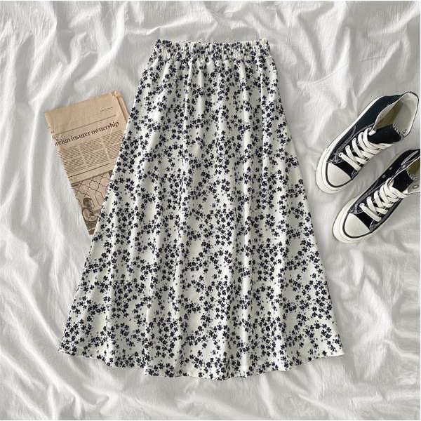 ลายดอกไม้ กระโปรงชีฟองเอวยางยืด