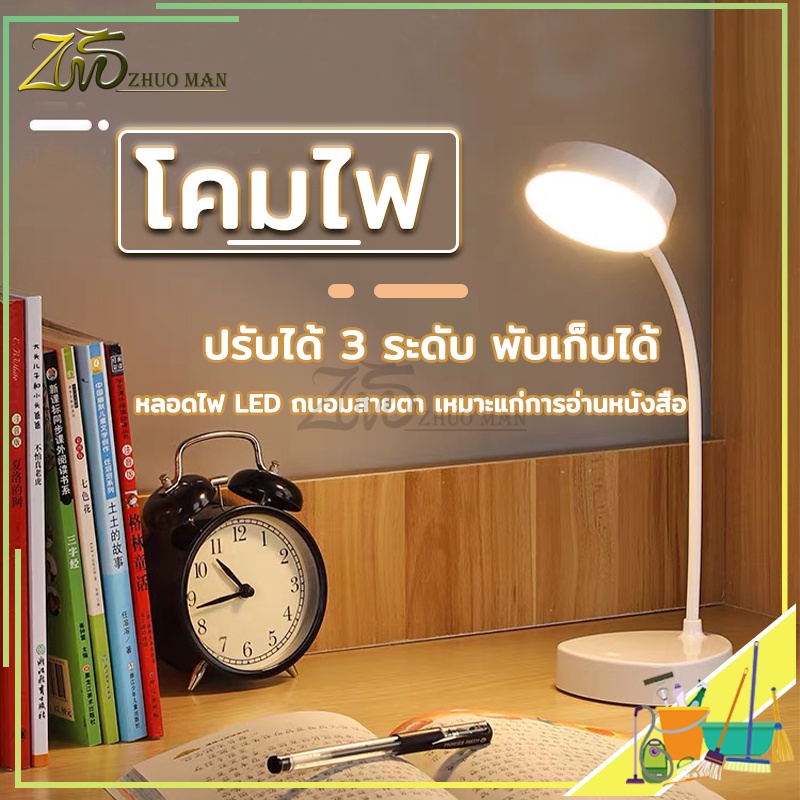 โคมไฟ โคมไฟตั้งโต๊ะ หัวเตียง อ่านหนังสือ led ตั้งทำงาน ปรับได้3 ระดับ พับเก็บได้
