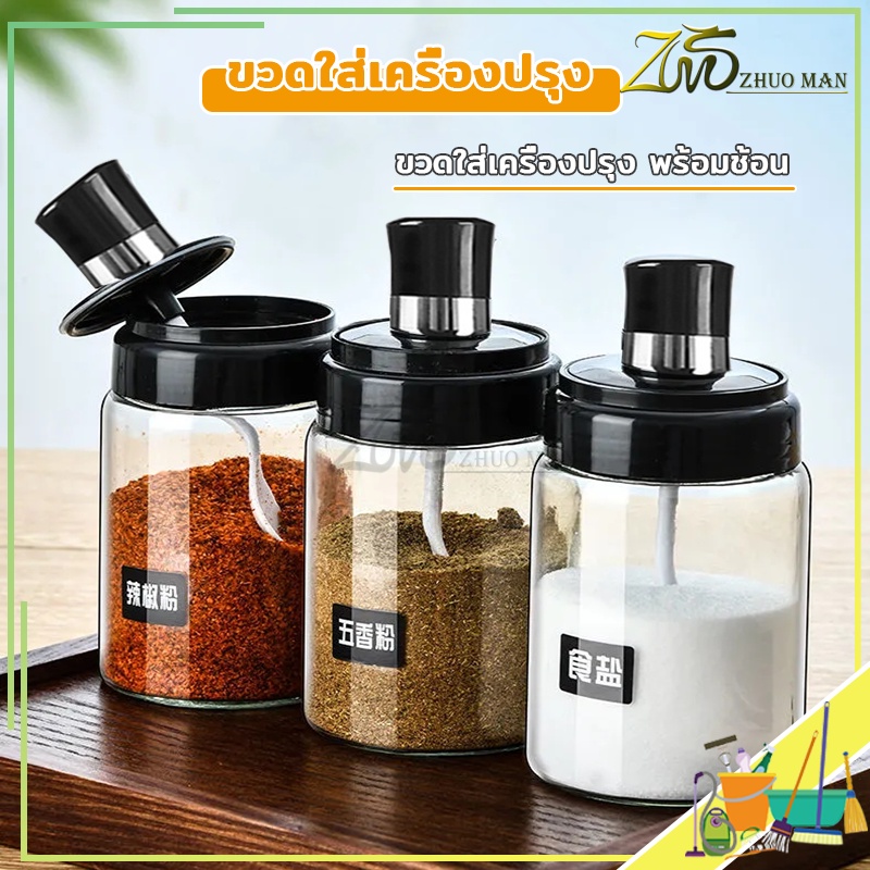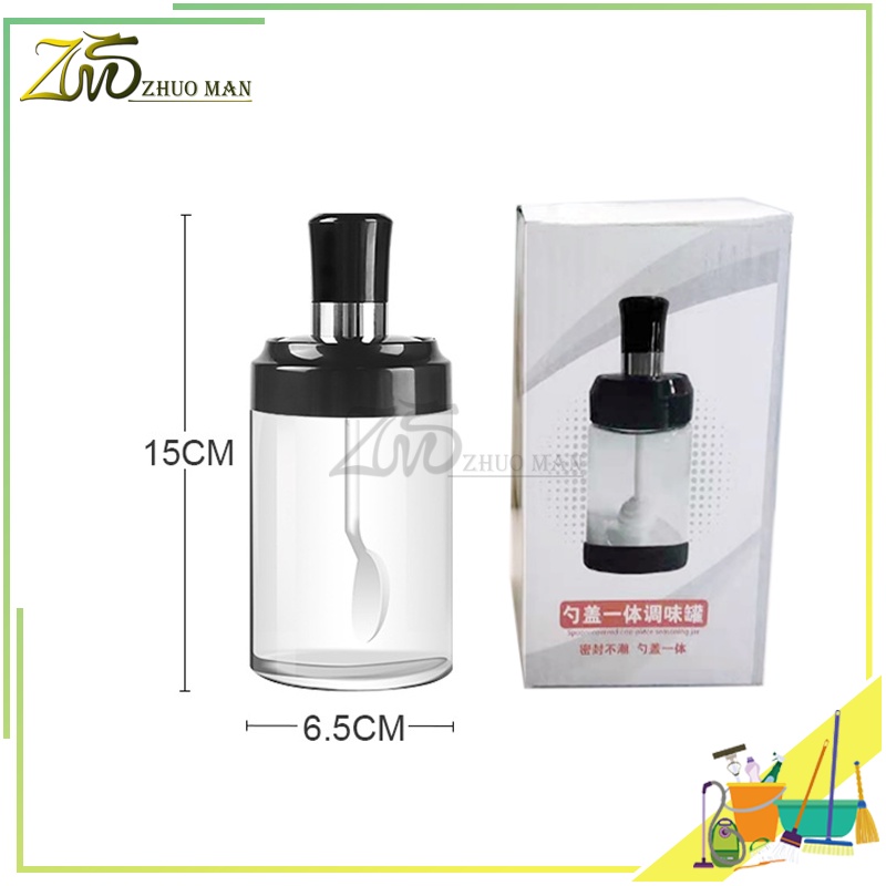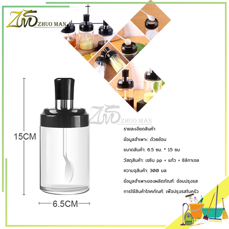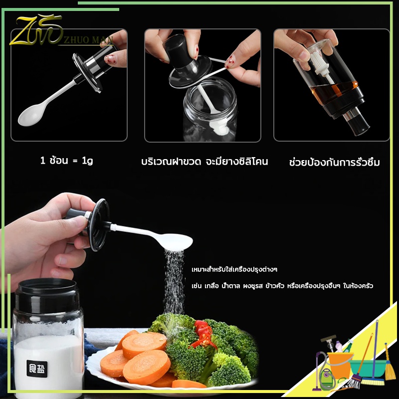 ขวดใส่เครื่องปรุง ด้วยช้อน เครื่องครัว วัสดุเป็นแก้ว ฝาปิด ซิลิโคนซีลป้องกันการรั่วซึม300ml