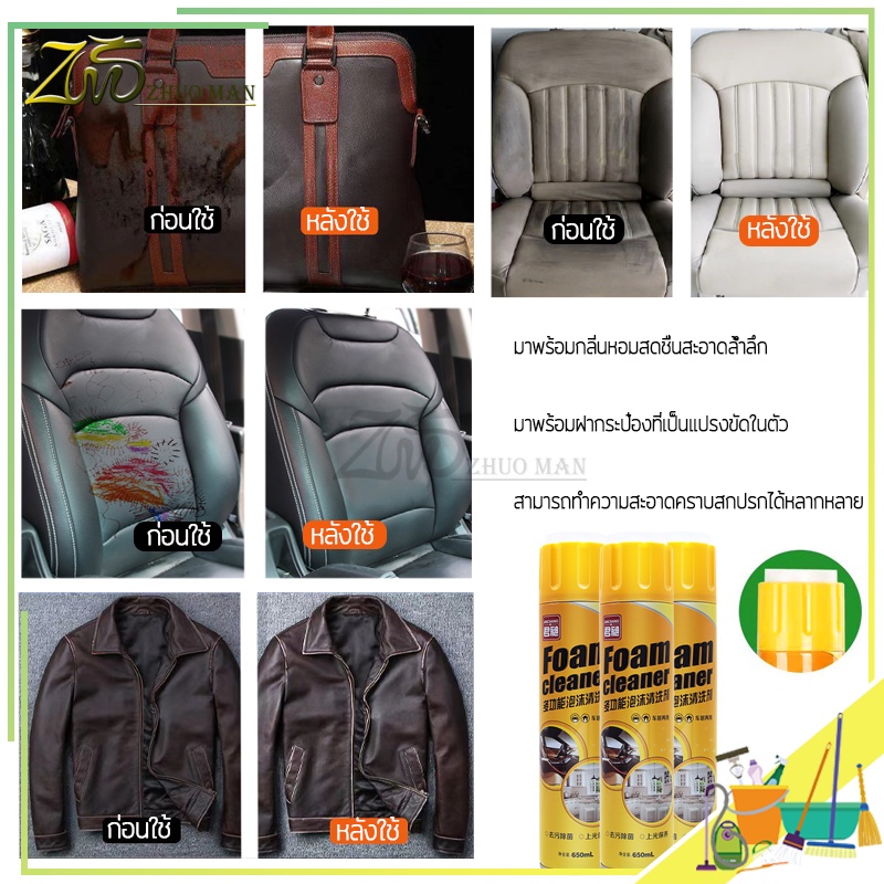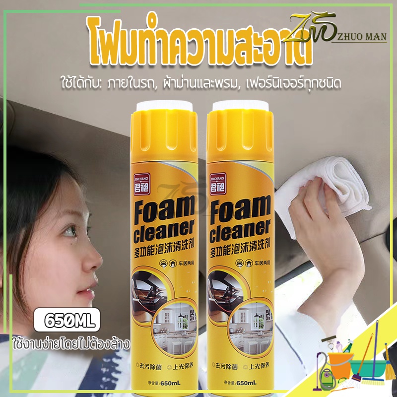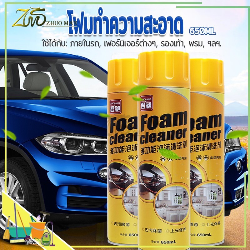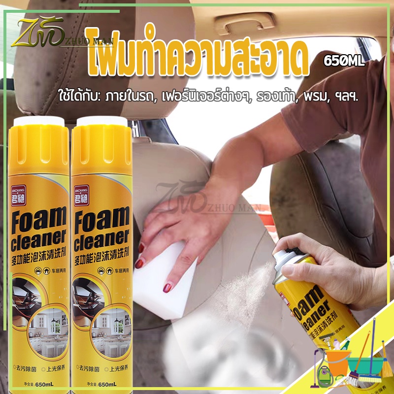 โฟมทำความสะอาด โฟมขจัดคราบ สเปรย์ทำความสะอาด Foam Cleaner สเปรย์ทำความสะอาด รถยนต์ คราบ ห้องครัว รองเท้า กระเป๋า ซักเบาะ เบาะผ้า เบาะหนัง 650ml