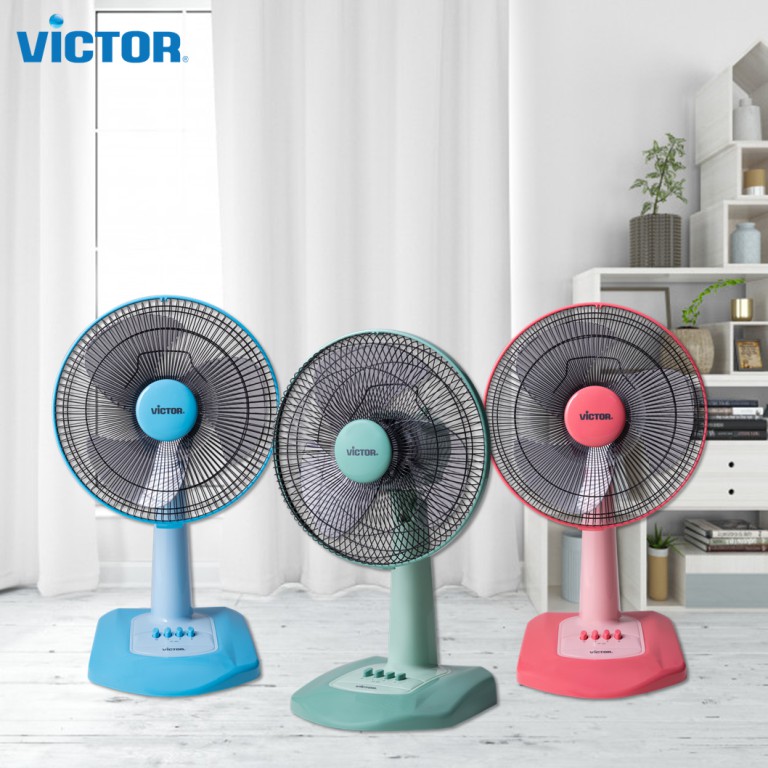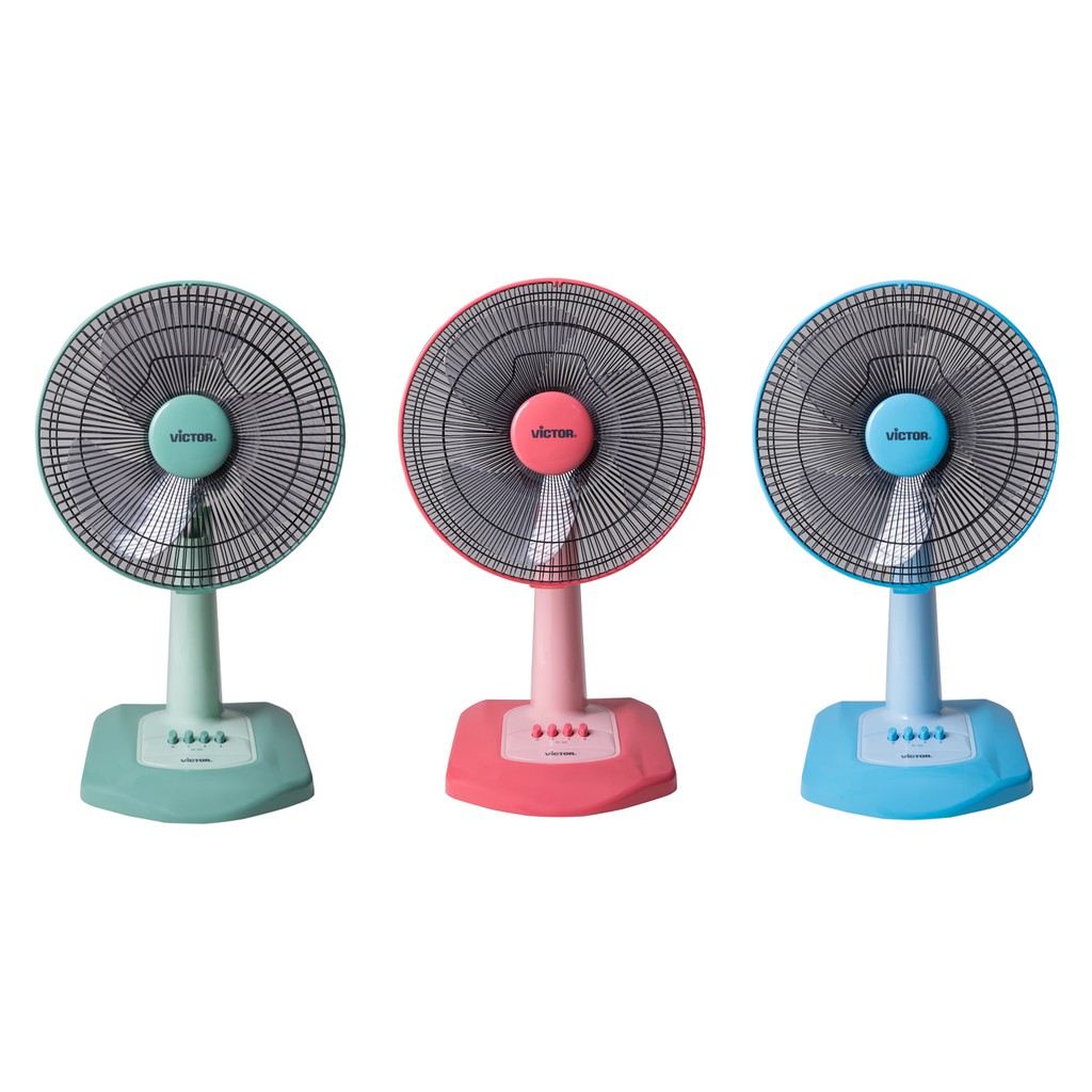 Victor พัดลม ตั้งโต๊ะ ขนาด 12 นิ้ว รุ่น TF-121 ใบพัดใส ความเร็วลม 3 ระดับ รับประกันมอเตอร์ 3 ปี สีพาสเทล ฟ้า เขียว ส้ม