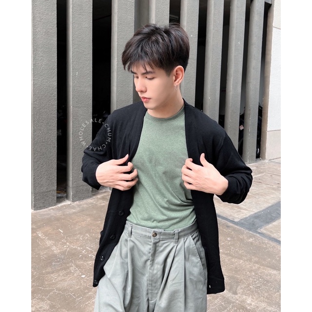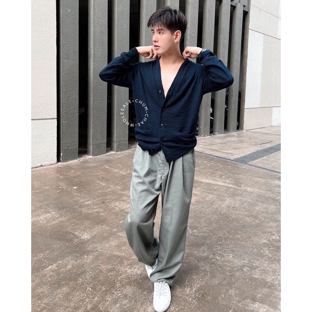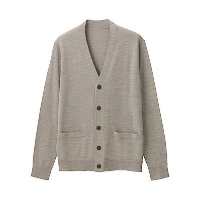 เสื้อไหมพรมผู้ชาย MUJI : Merino wool washable V neck cardigan #11385145887