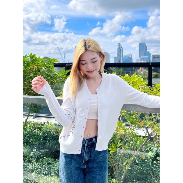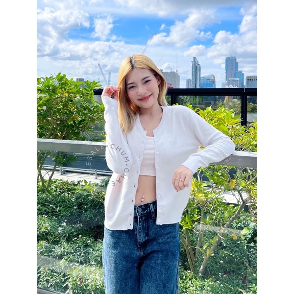 เสื้อไหมพรมผู้หญิง เสื้อไหมพรมญี่ปุ่น MUJI : UV cut lecture crew neck cardigan เสื้อคลุมกันลมกันแดด #17126766021