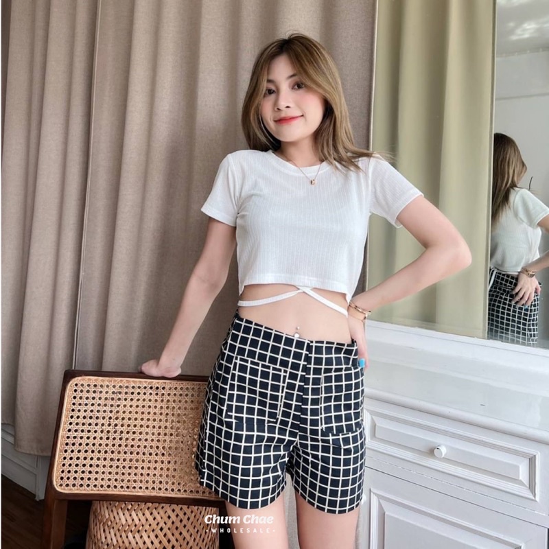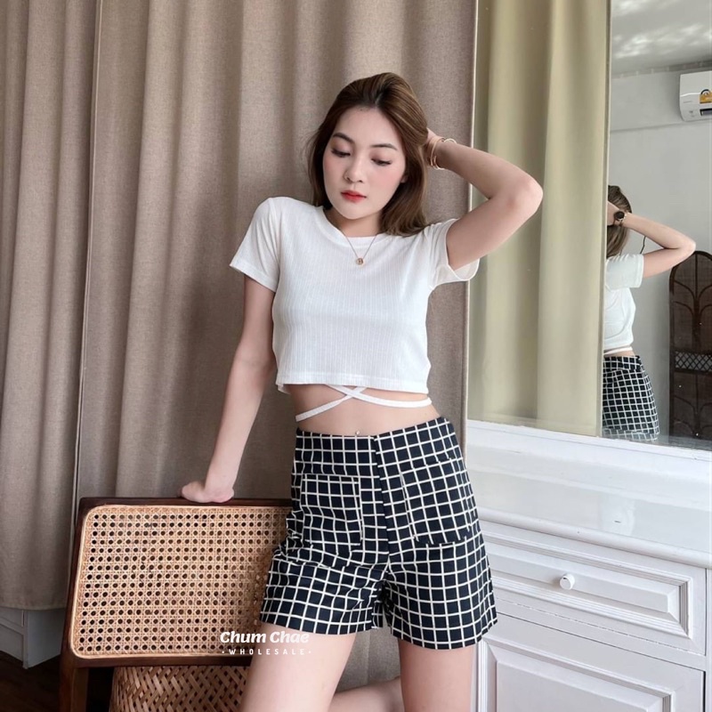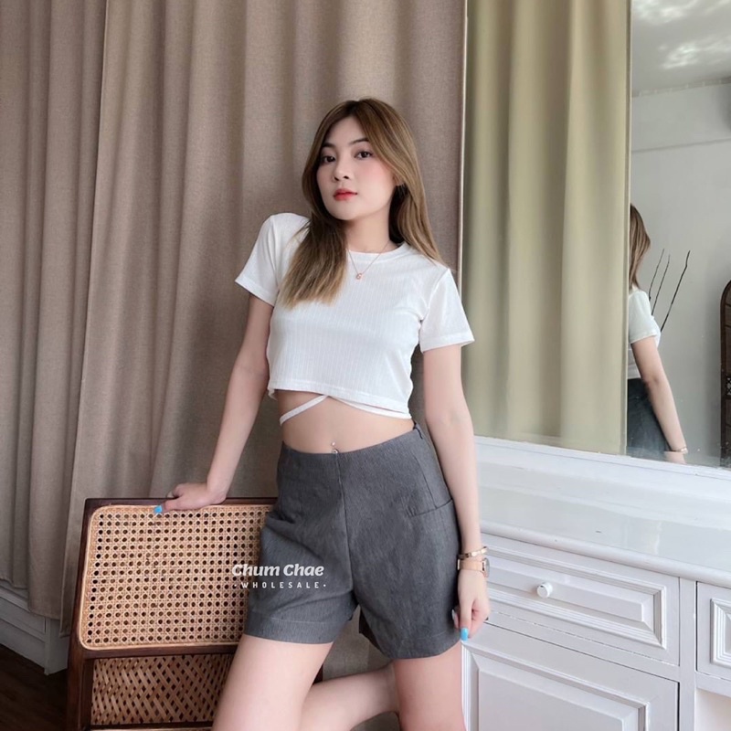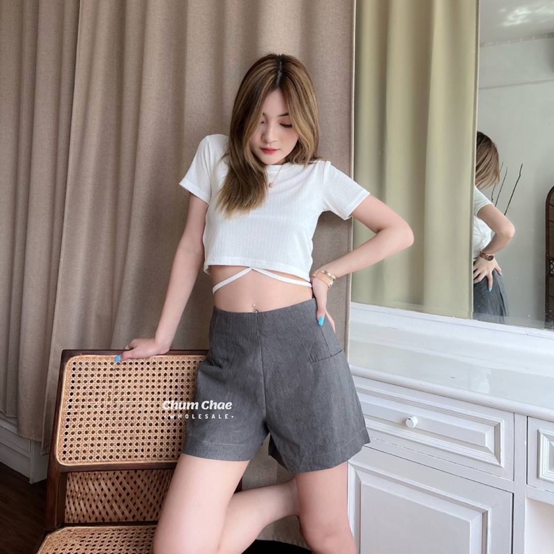กางเกงขาสั้น เอวสูง ทรงกระเป๋าหน้า WEALTH BANGKOK #4171853105