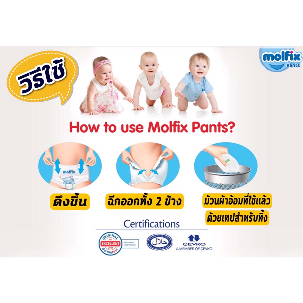 (1 ห่อ) กางเกงผ้าอ้อม ผ้าอ้อมเด็ก มอลฟิกซ์ (Molfix Extra Dry) โมฟิกซ์ (รุ่นเอ็กซ์ตร้า ดราย) เรกูล่า