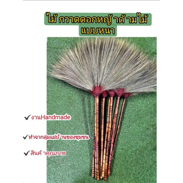 ไม้กวาดดอกหญ้าด้ามไม้ แบบหนา (นครนายก)งานhandmade