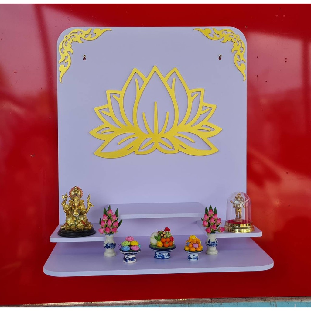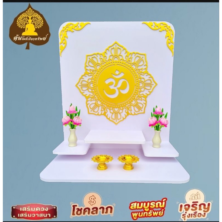 หิ้งโอม H1 โอม หิ้งพระติดผนัง พระพิฆเนศ ท้าวเวสสุวรรณ หิ้งไอ้ไข่ ต้นโพเรียกทรัพย์ พระราหู ชั้นวางพระ หิ้งคอนโด..