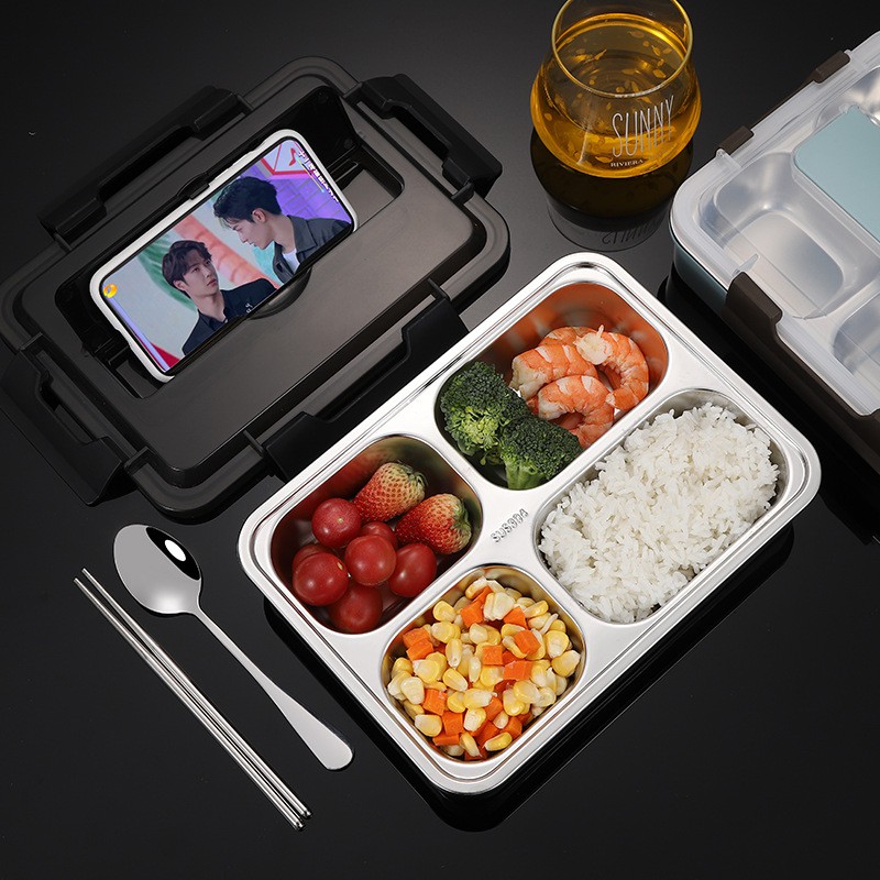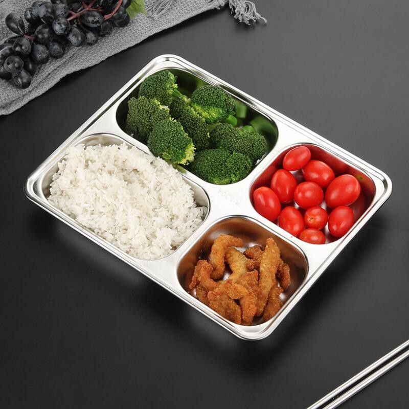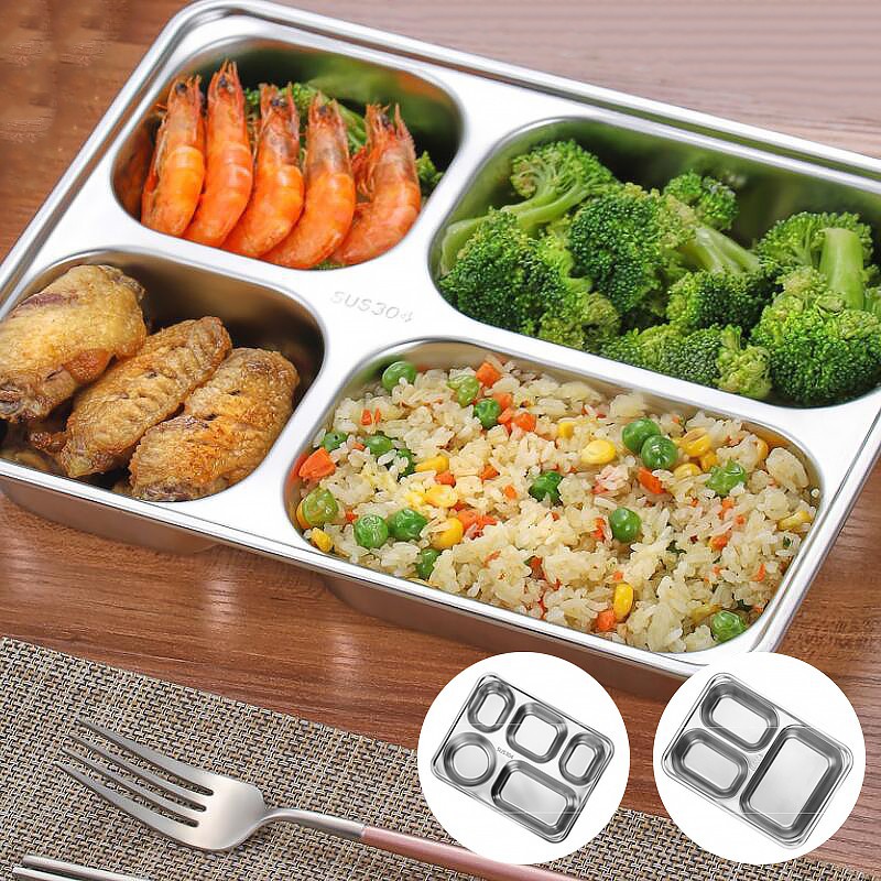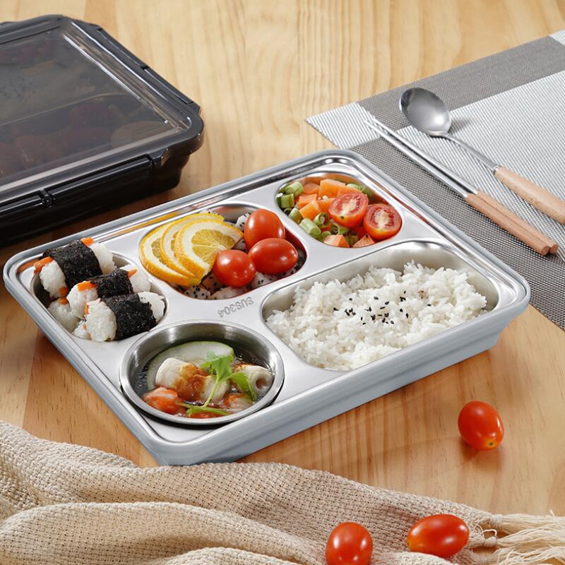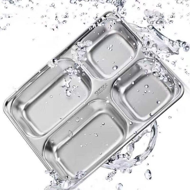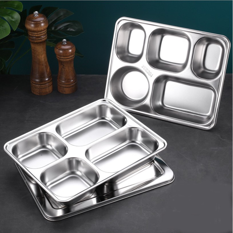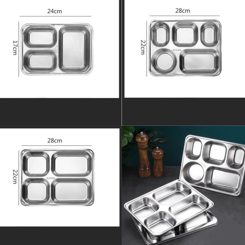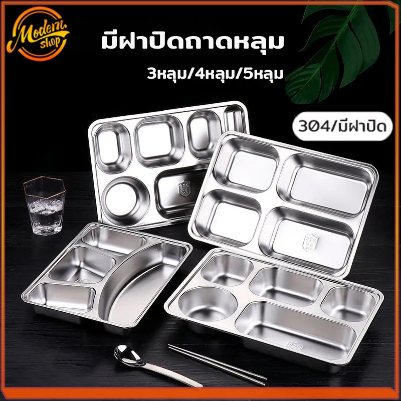 304ถาดหลุมสแตนเลส ถาดหลุมใส่อาหาร ถาดหลุม มีฝาปิด กล่องข้าว 3 หลุม 4 หลุม และ 5 หลุม(ขนาดใหญ่)28x22.5x4.5cm-A125