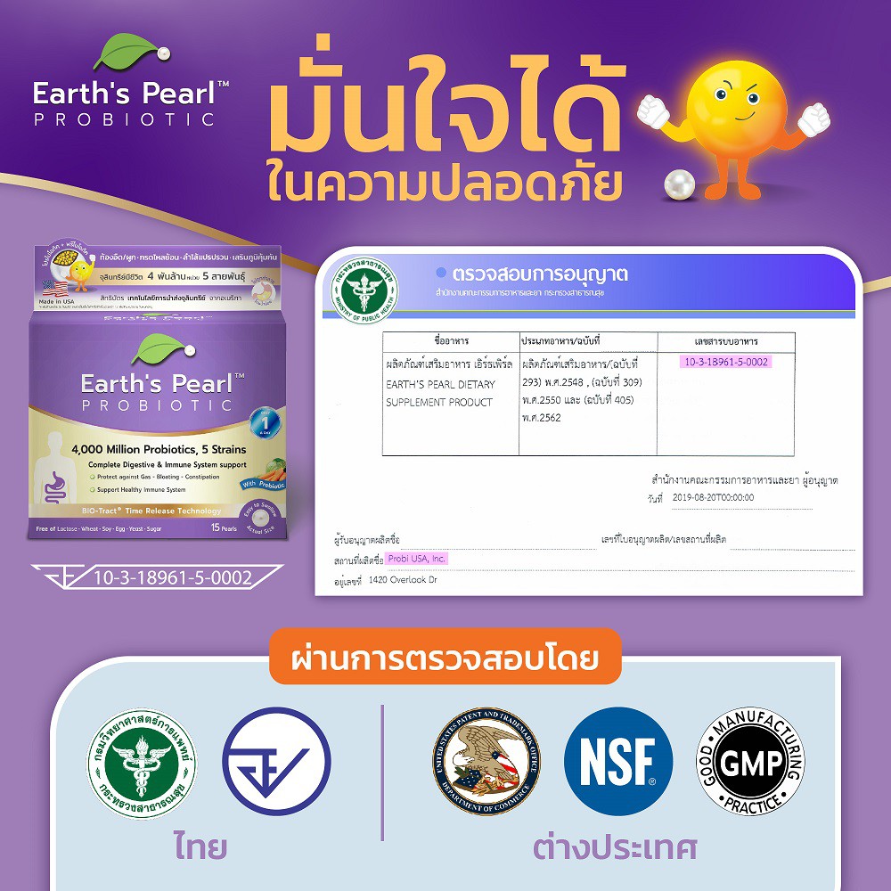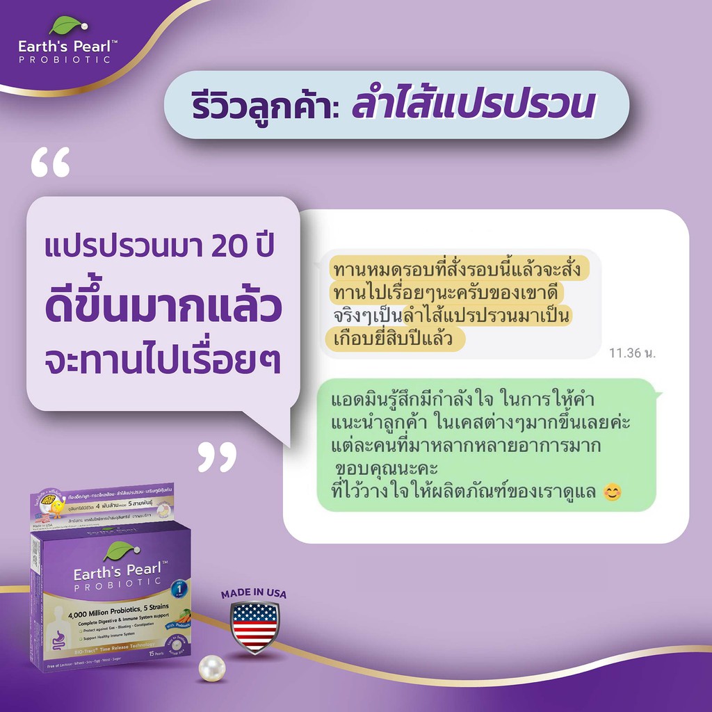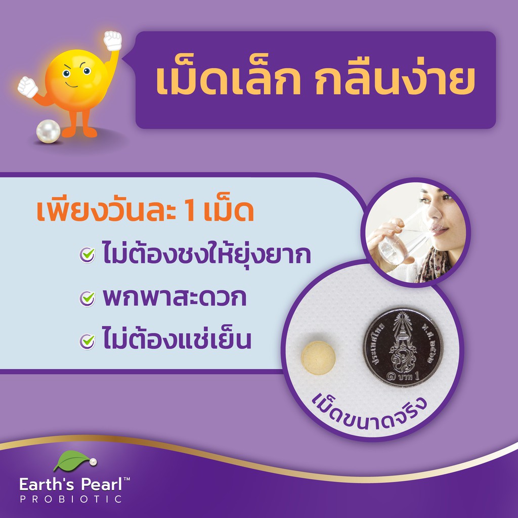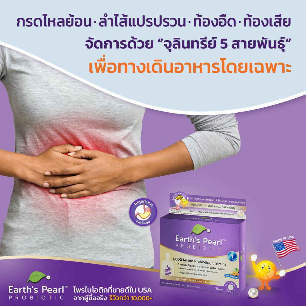 โปรไบโอติก Earth's Pearl ลดท้องอืด ขับถ่ายดี จุลินทรีย์ 5 สายพันธุ์ นำเข้าจากอเมริกา 1 กล่อง