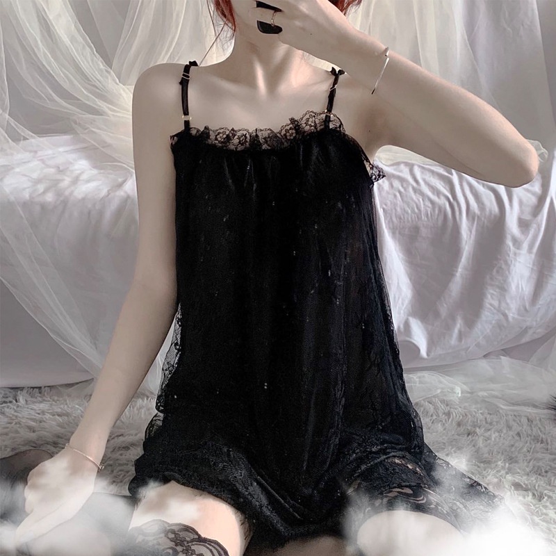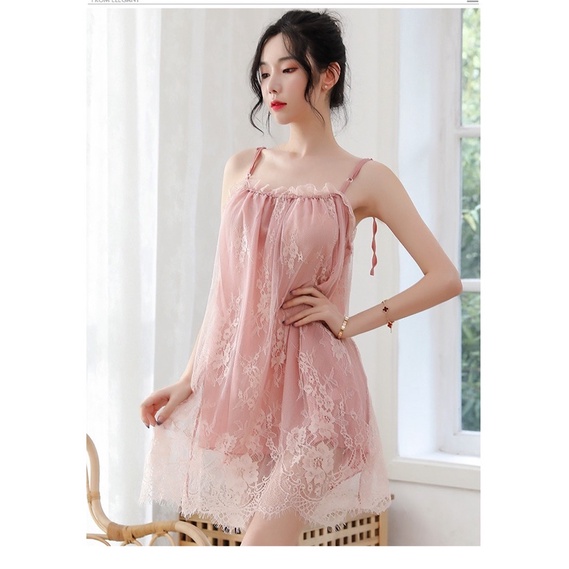 👗สินค้าพร้อมส่ง👗ชุดนอนเซ็กซี่ พร้อมจีสตริง ชุดนอนลูกไม้ ชุดนอนสายเดี่ยว แต่งระบายทั้งตัว ใส่สบาย ดีไซน์สวย (รุ่นS014)