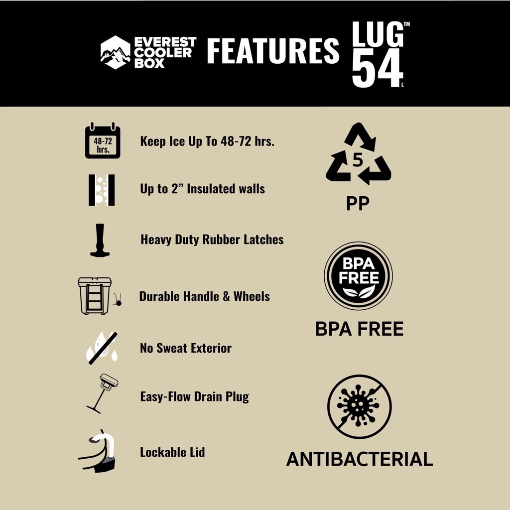 Everest LUG™ 54 กระติกมีล้อและหูลาก 54ลิตร เก็บความเย็นได้48-72ช.ม. มี 4สี