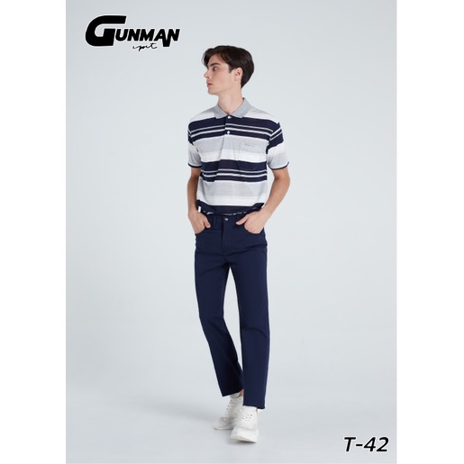 Gunman เสื้อโปโลแขนสั้นผู้ชายมีกระเป๋า คอปก ลายริ้ว คลาสสิค สไตล์ยุโรป รุ่น T-042