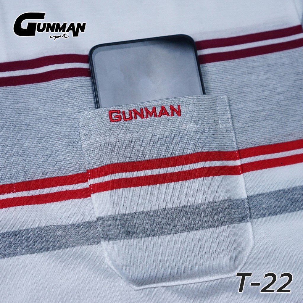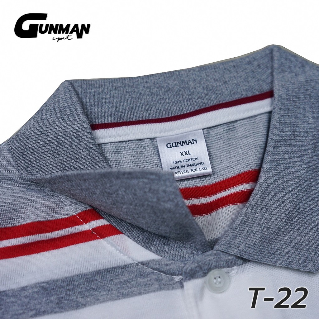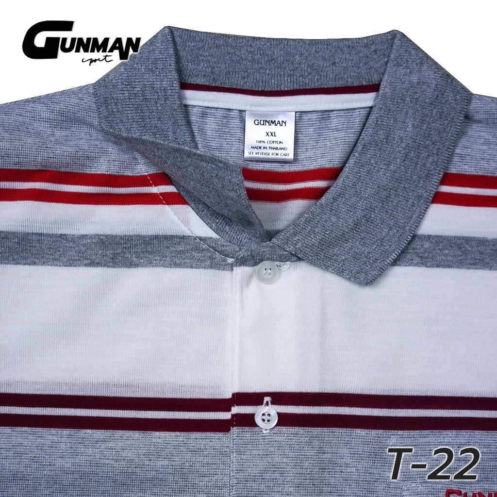Gunman เสื้อโปโลแขนสั้นผู้ชายมีกระเป๋า คอปก ลายริ้ว คลาสสิค สไตล์ยุโรป สำหรับผู้ใหญ่ รุ่น T-022