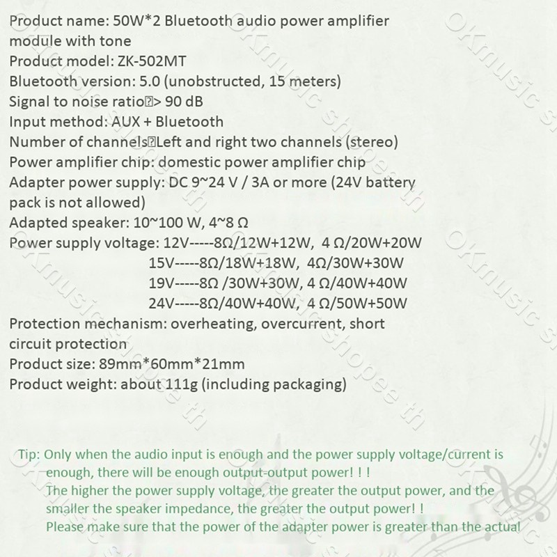 แอมป์จิ๋ว ZK 502MT แอมจิ๋ว บลูทู ธ 5.0 ซับวูฟเฟอร์เครื่องขยายเสียง กำลังขับ 2*50W amplifier bluetooth,แอมจิ๋ว,แอมป์จิ๋ว