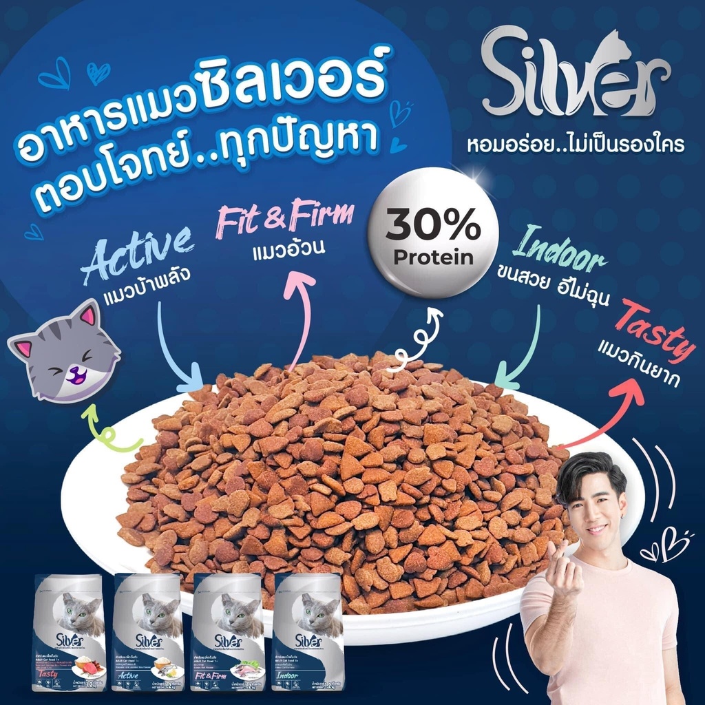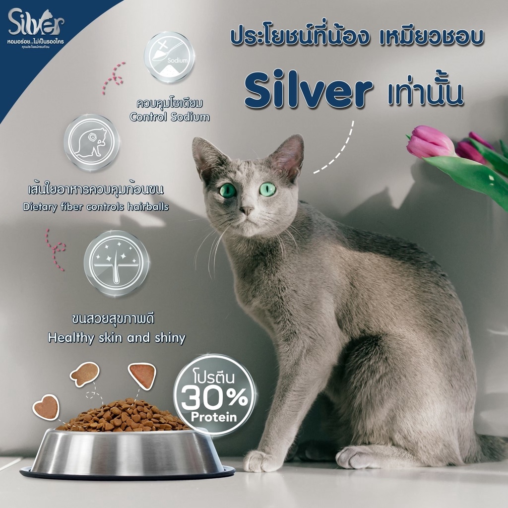 อาหารแม วชนิดเม็ด Silver (ซิลเวอร์) อาหารแมวเม็ด อาหารแมวเม็ด ถุง 1kg (ถุงแบ่งโรงงาน)