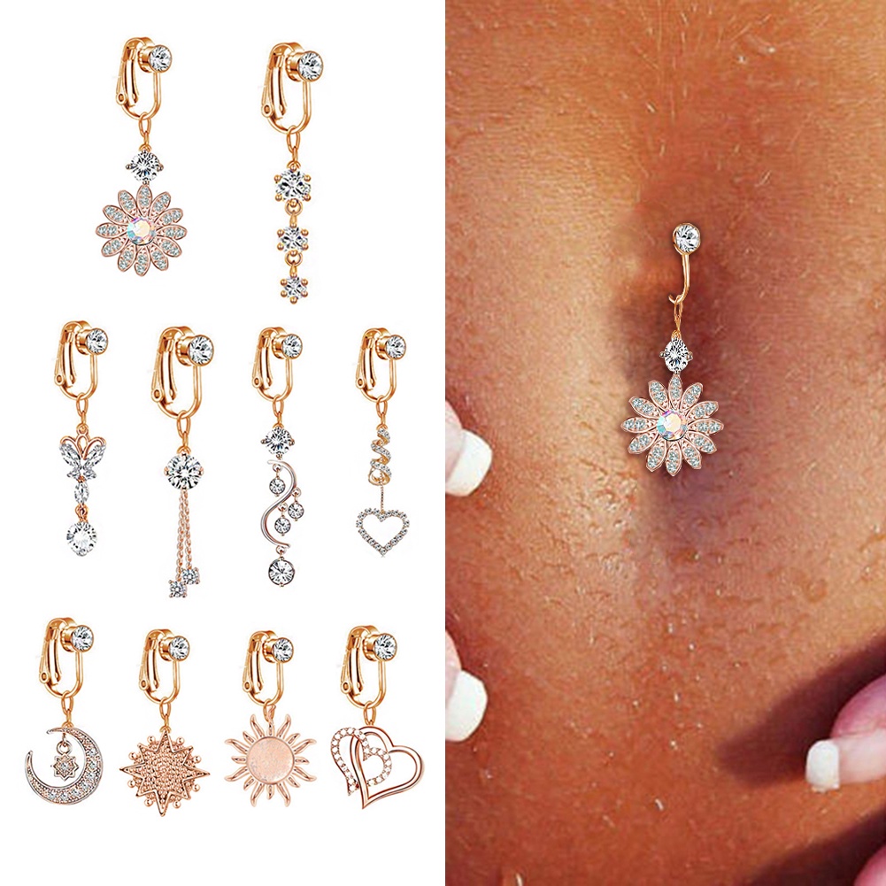จิวสะดือ จิวสะดือ ห้อยจี้รูปหัวใจ ใบไม้ ดอกเดซี่น้อย สีเขียว