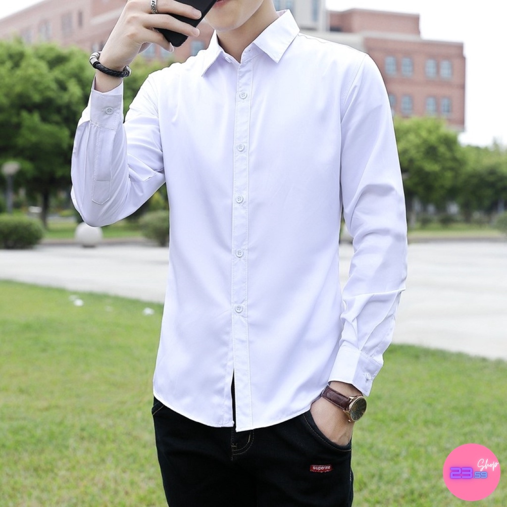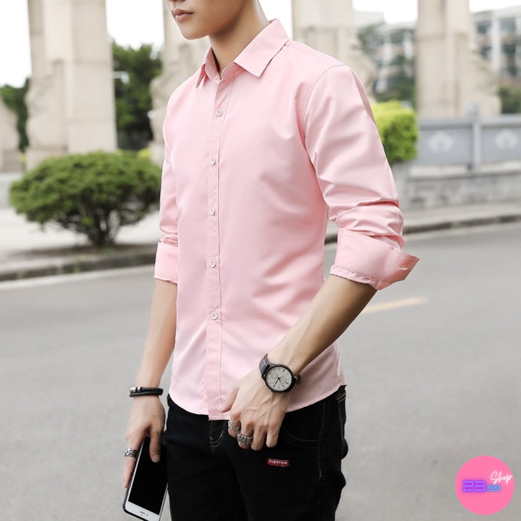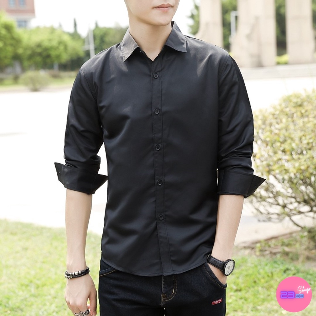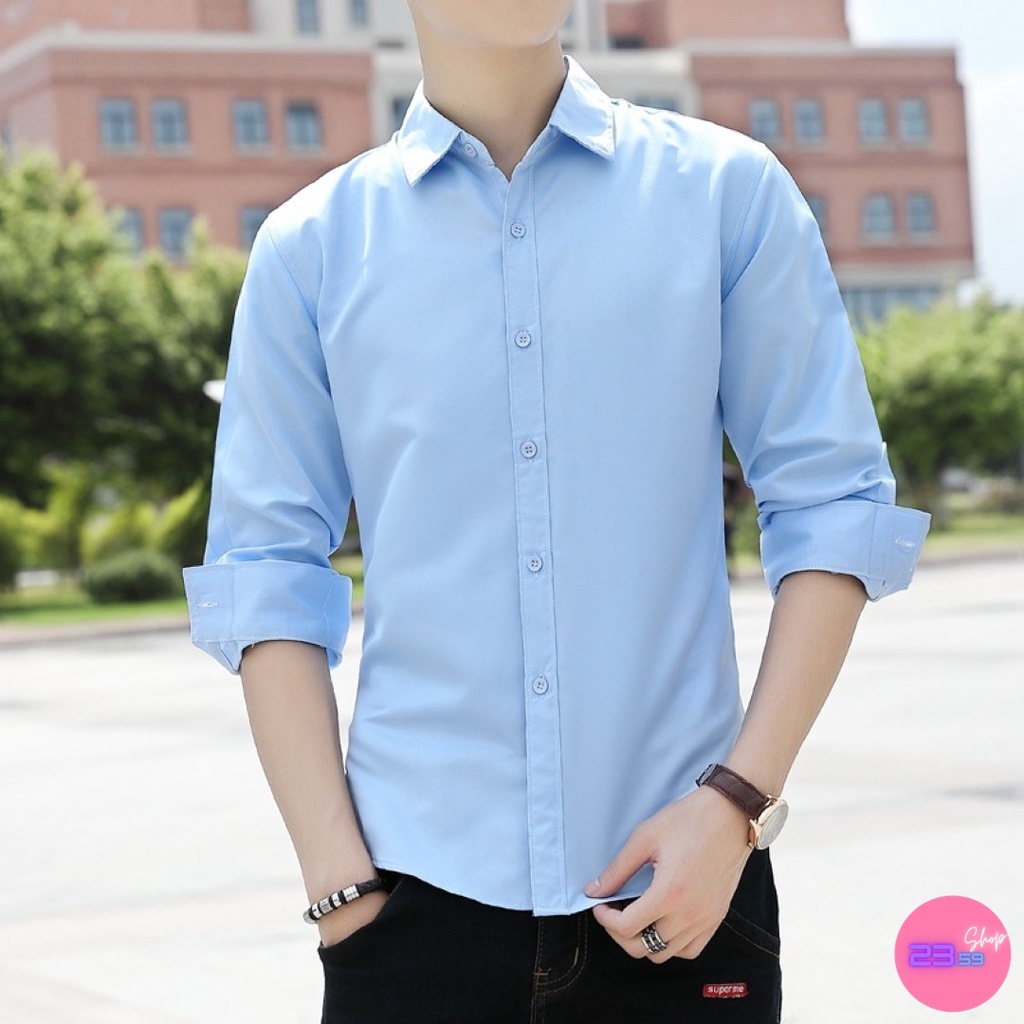 🚩Sale80%🚩เสื้อเชิ้ตชายสุภาพแขนยาว ผ้านิ่มลื่น แถบกระดุม สีพื้น 7 สี