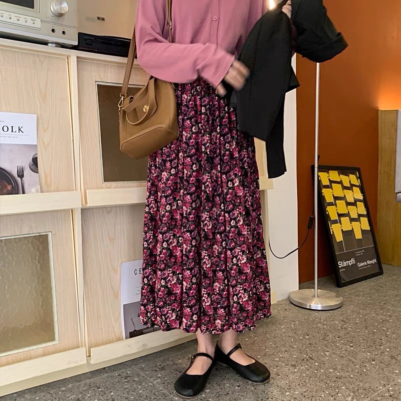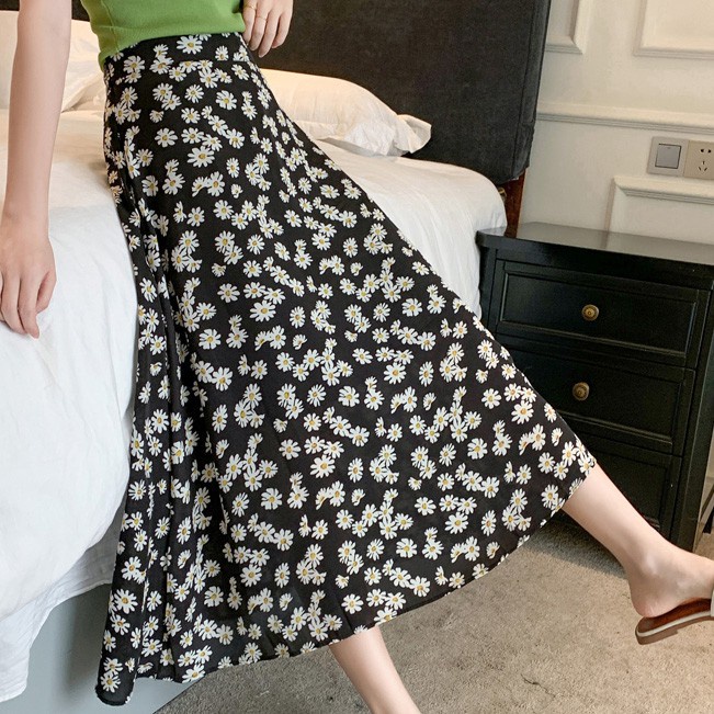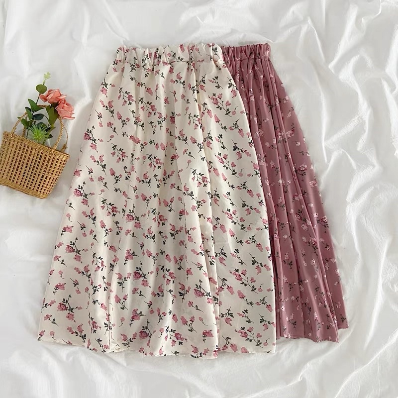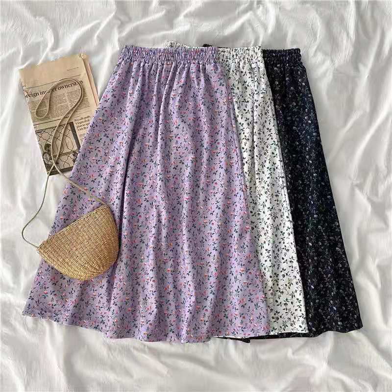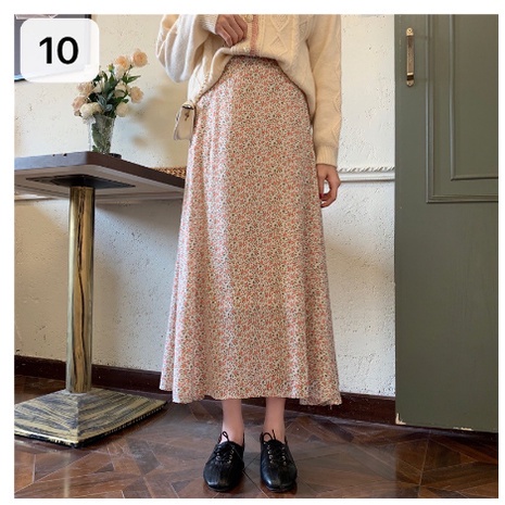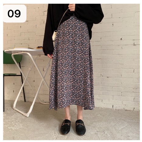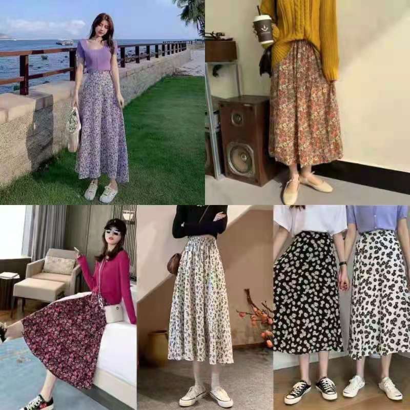 โปรงยาวทรงพริ้วคลุมเข่า มีหลายแบบให้เลือก รุ่น 9413 กระโปรงแฟชั่น กระโปรงลายดอก