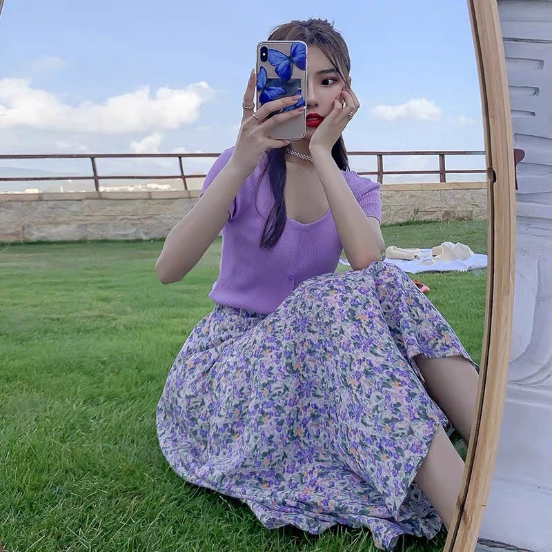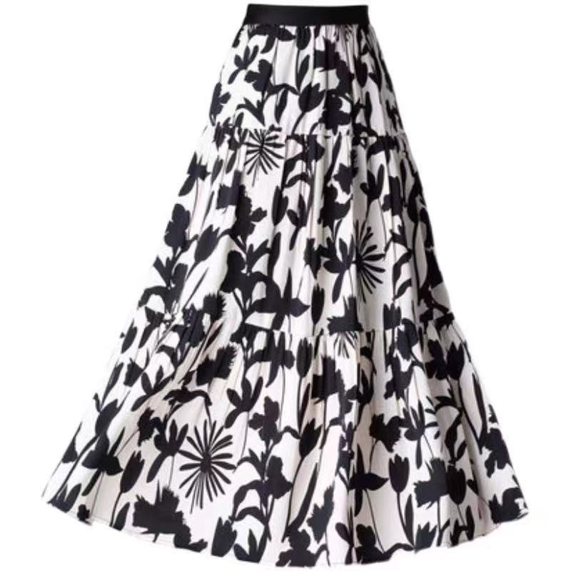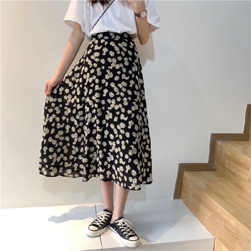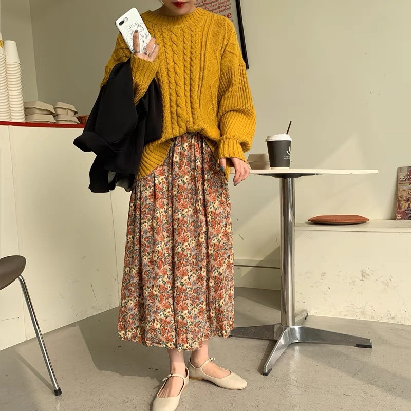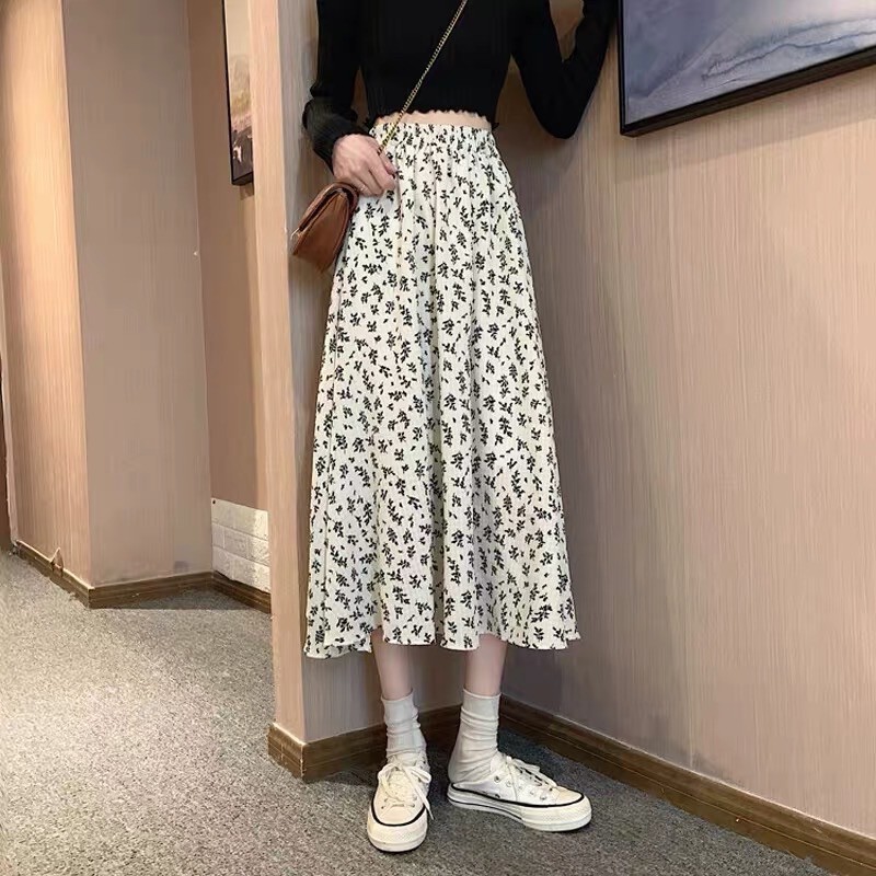 โปรงยาวทรงพริ้วคลุมเข่า มีหลายแบบให้เลือก รุ่น 9413 กระโปรงแฟชั่น กระโปรงลายดอก