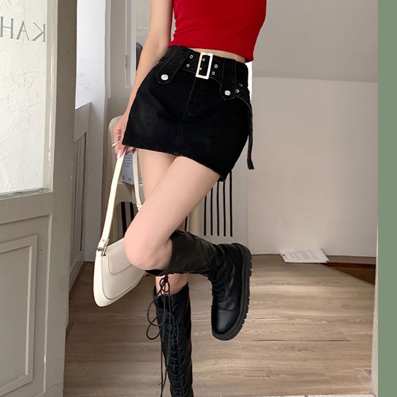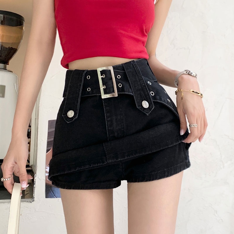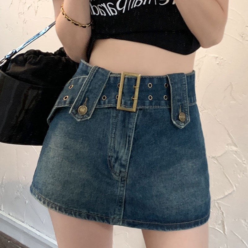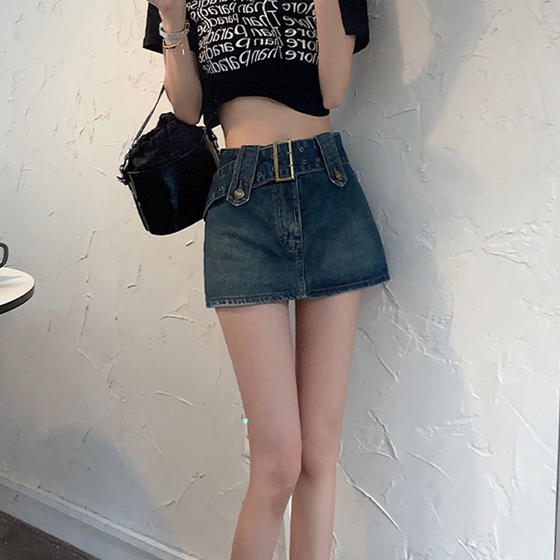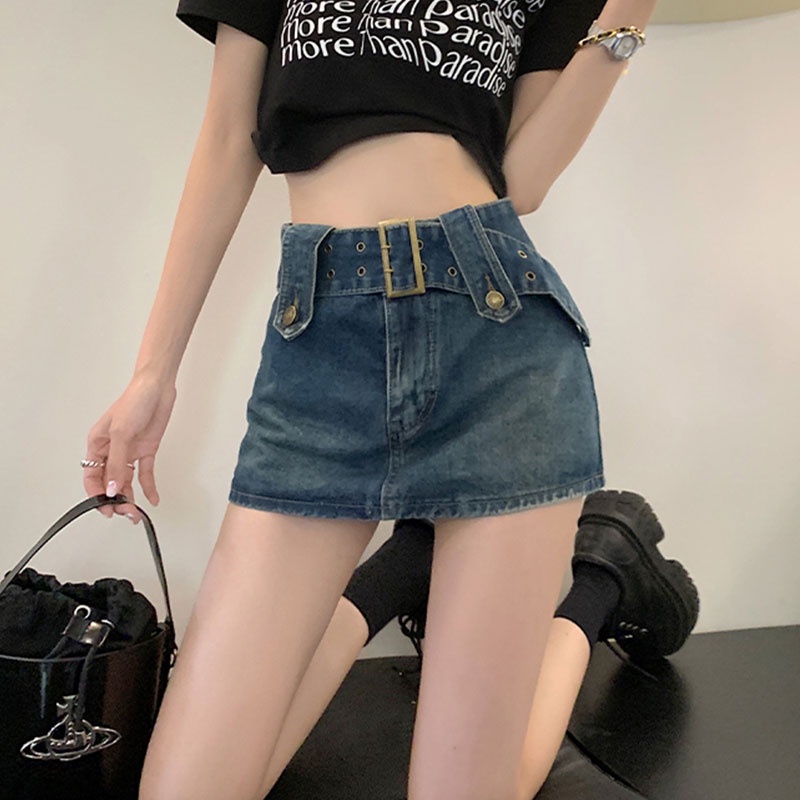 กระโปรงยีนส์สั้นซับในเป็นกางเกงแถมเข็มขัด