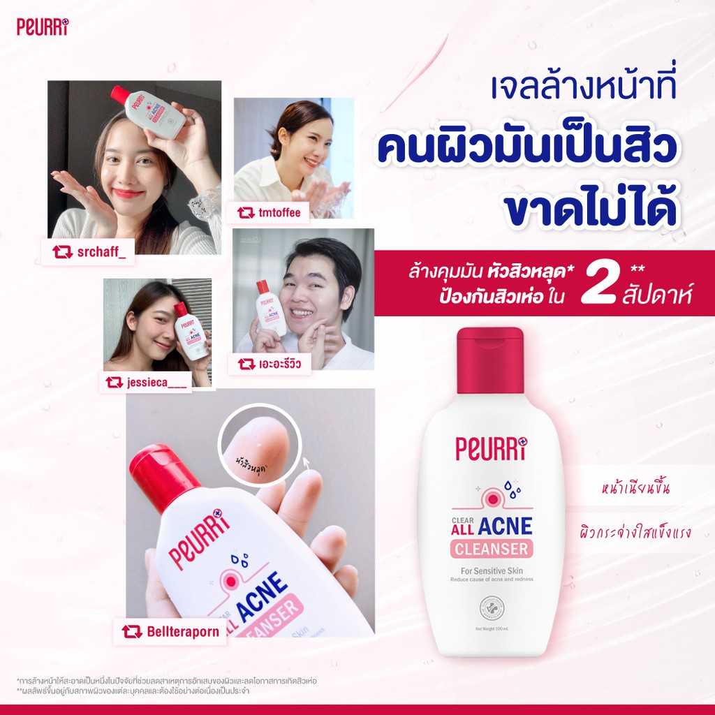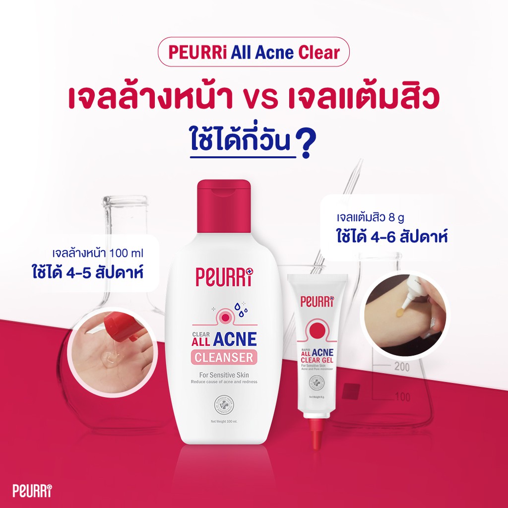 [เซ็ตลดสิวไม่ทิ้งรอย] PEURRI By Puricas Acne Cleanser 100ml + Anti Acne Gel 8g + Puricas Scar Gel 8 g.