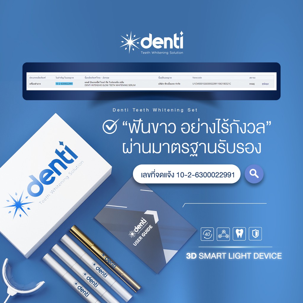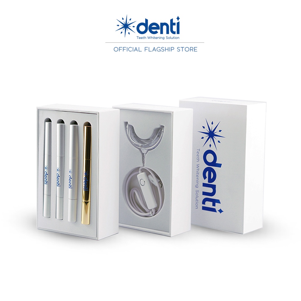 ชุดฟอกฟันขาวเดนติ [เครื่องฟอกฟัน+เซรั่มปากกา4แท่ง] Denti Teeth Whitening Set
