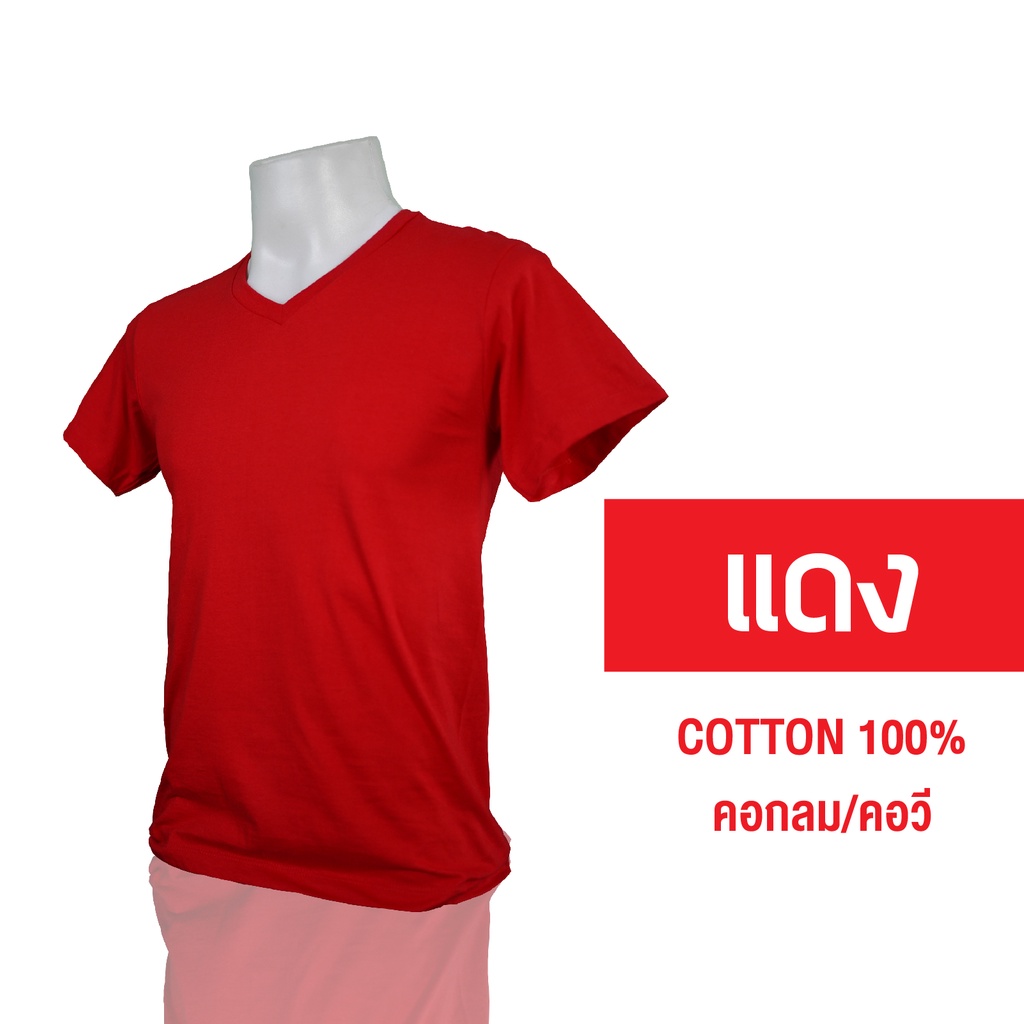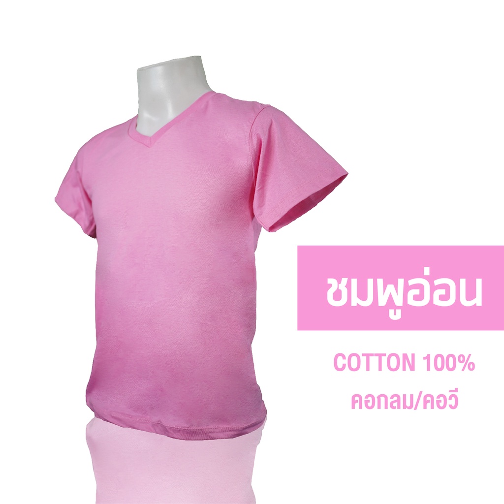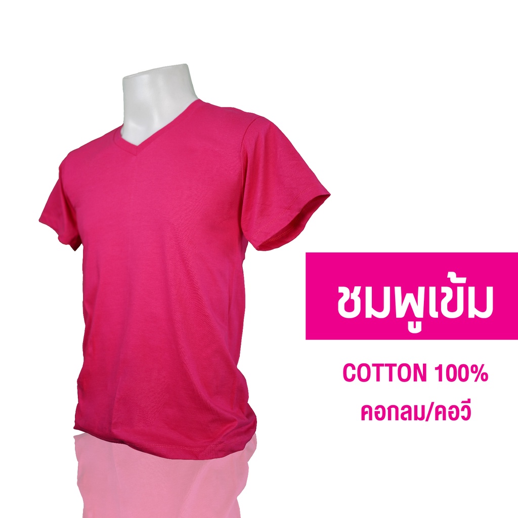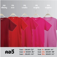 V-เสื้อยืดคอวี Unisex สีพื้น โทนสีแดงชมพู ผ้า Cotton100% ราคาส่ง