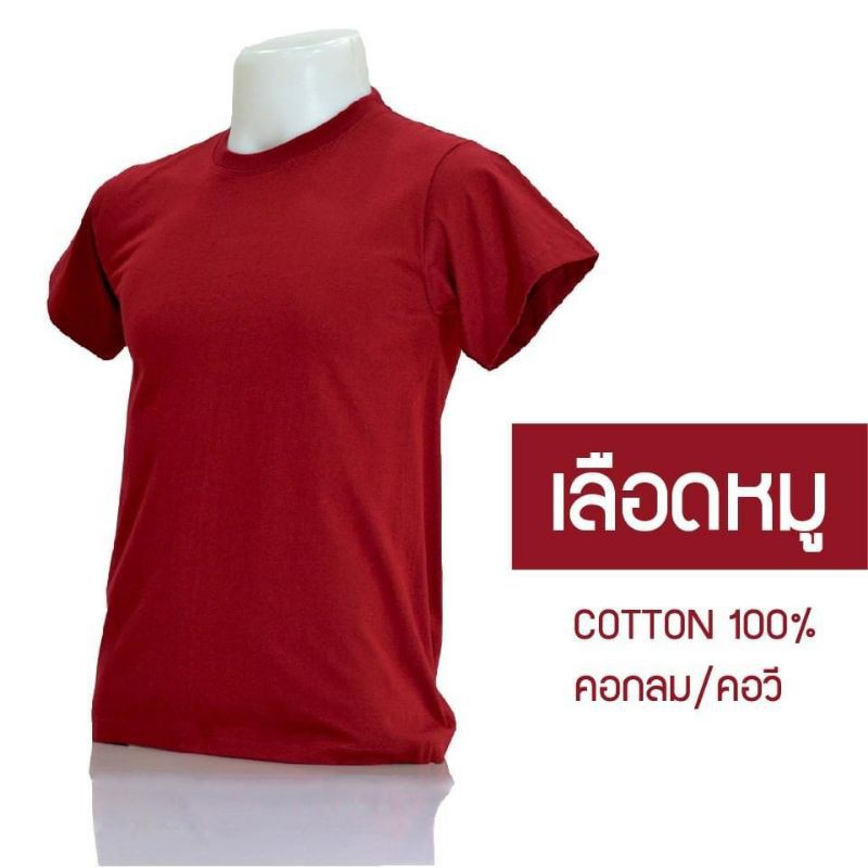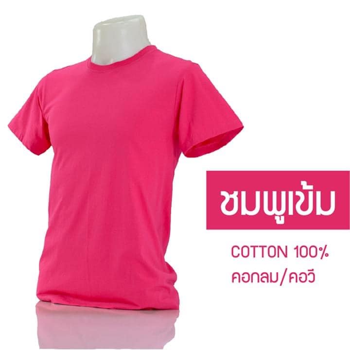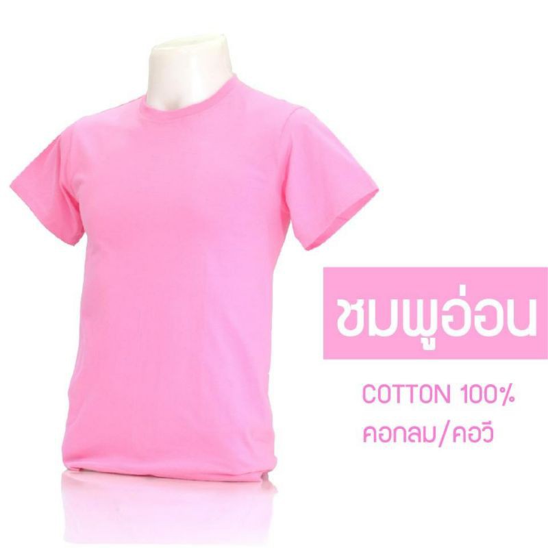 O-เสื้อยืดคอกลม Unisex สีพื้น โทนสีแดงชมพู ผ้า Cotton100% ราคาส่ง มี 5 สี