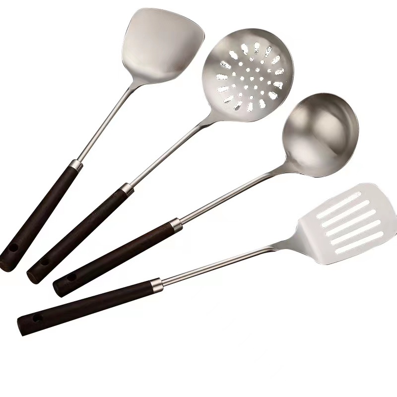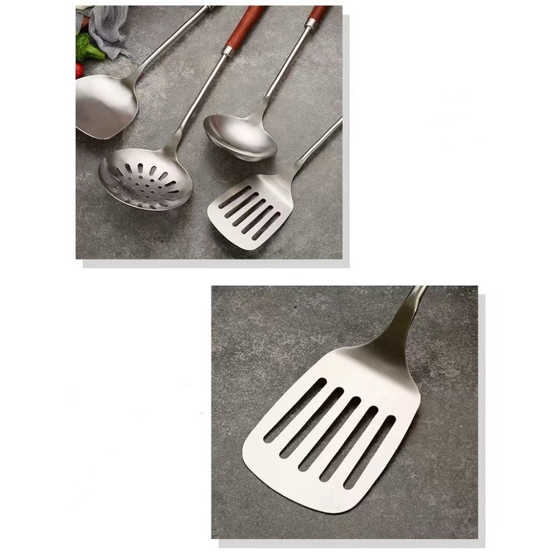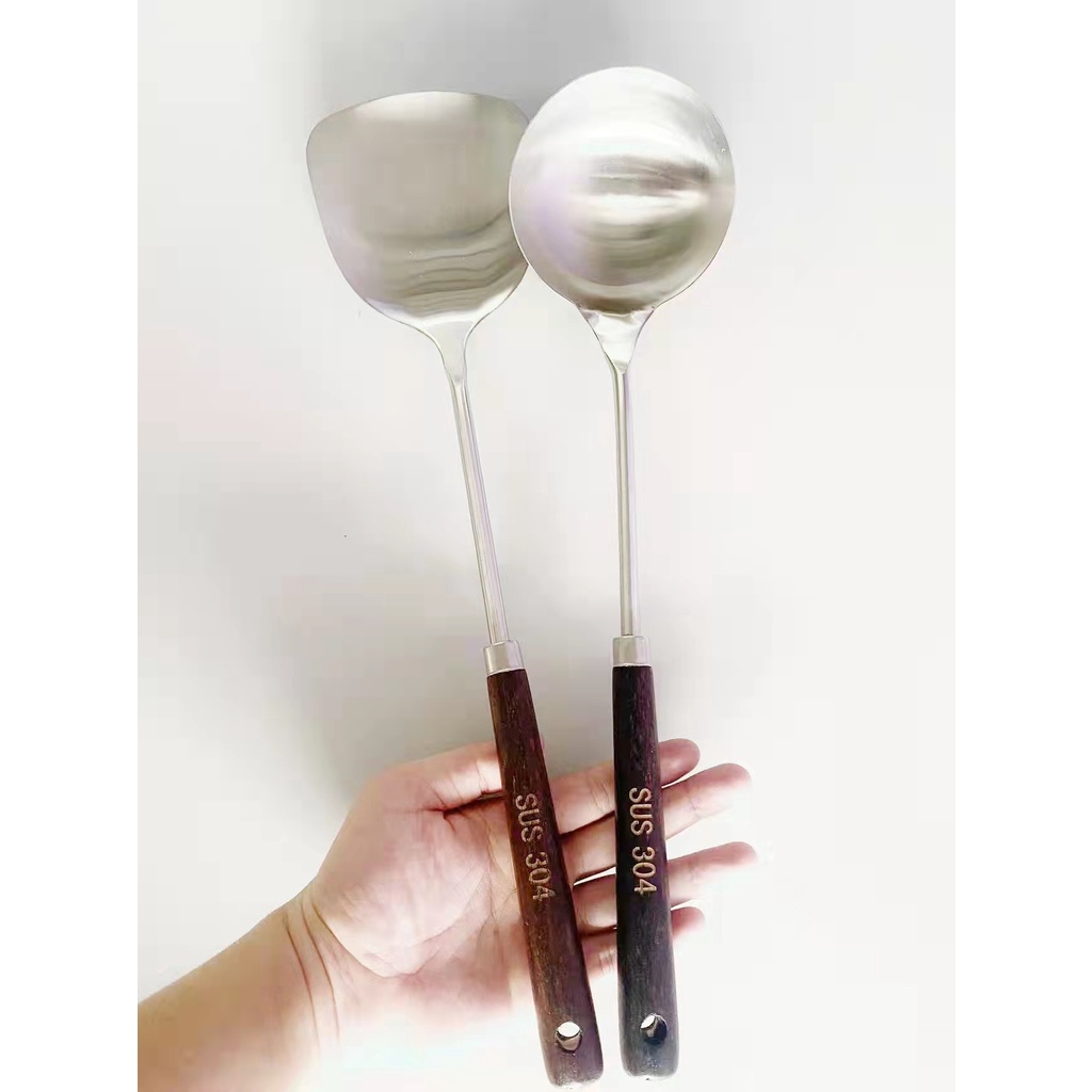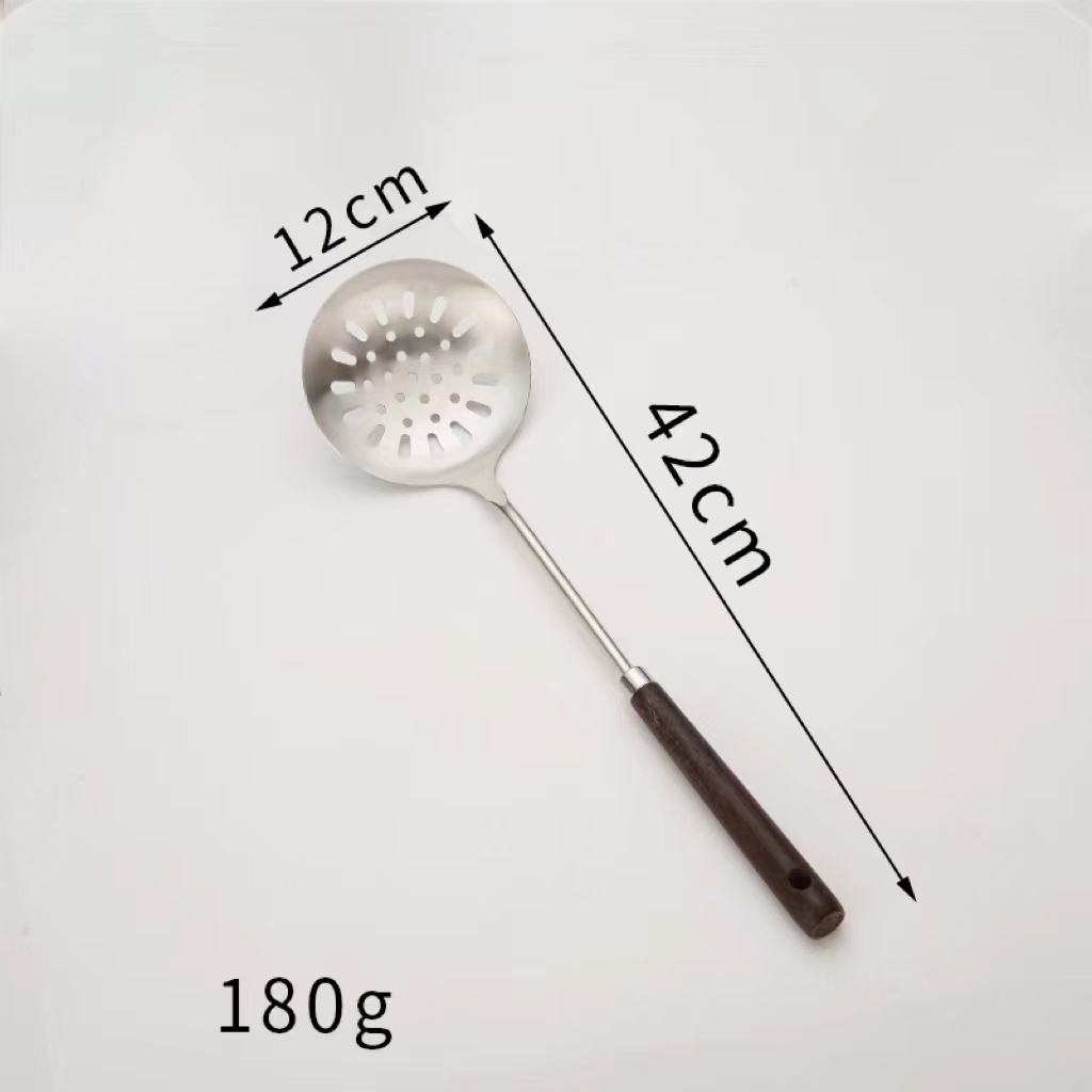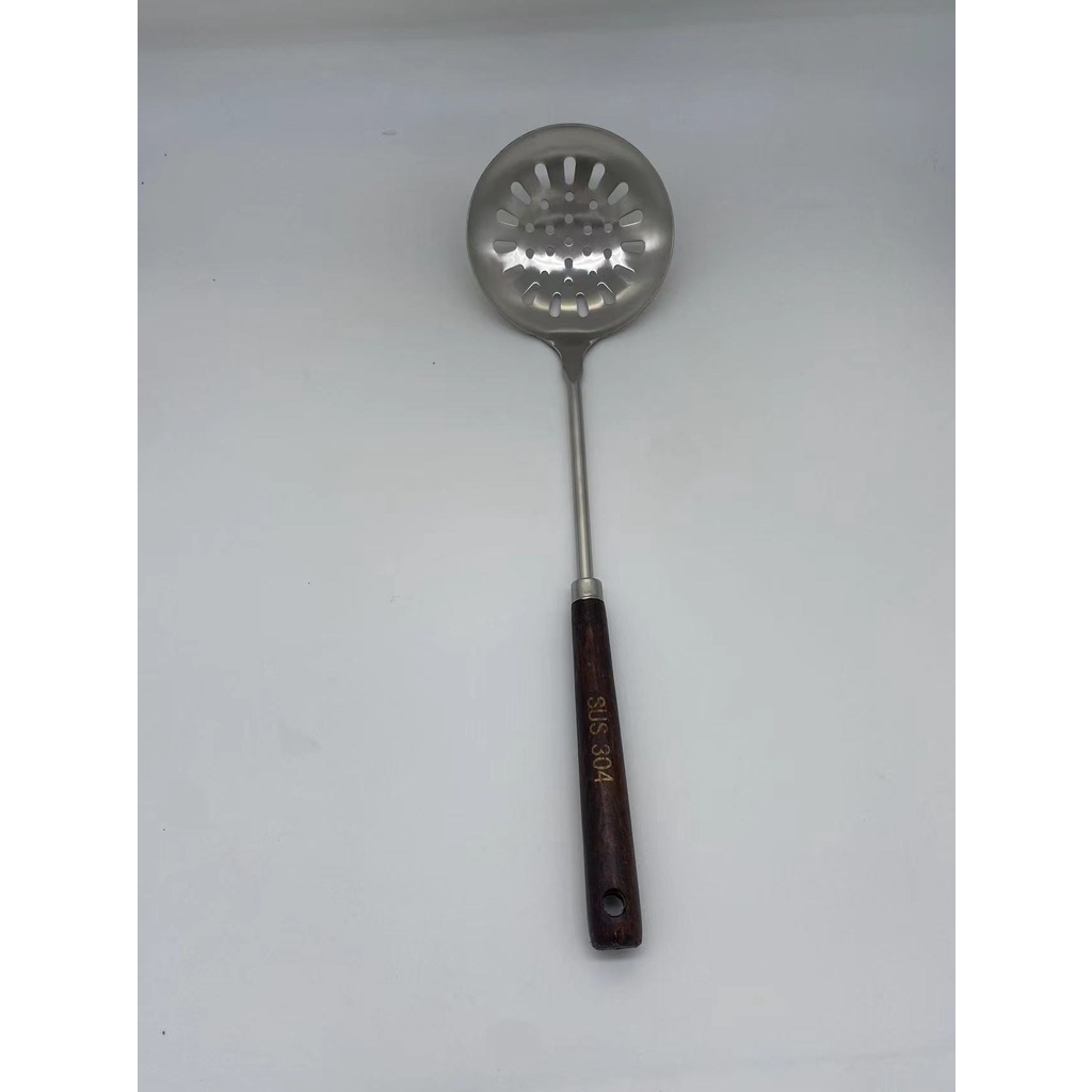 T.C กระบวยผัดอาหาร กระชอน ตะหลิว 38.5cm สแตนเลส304 กระบวยแบบยาว ด้ามไม้ กระบวยสุกี้ กระบวยตักน้ำซุป 汤勺