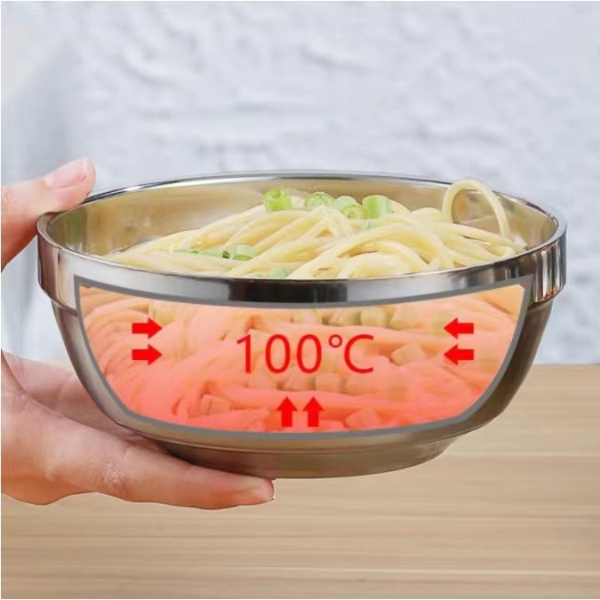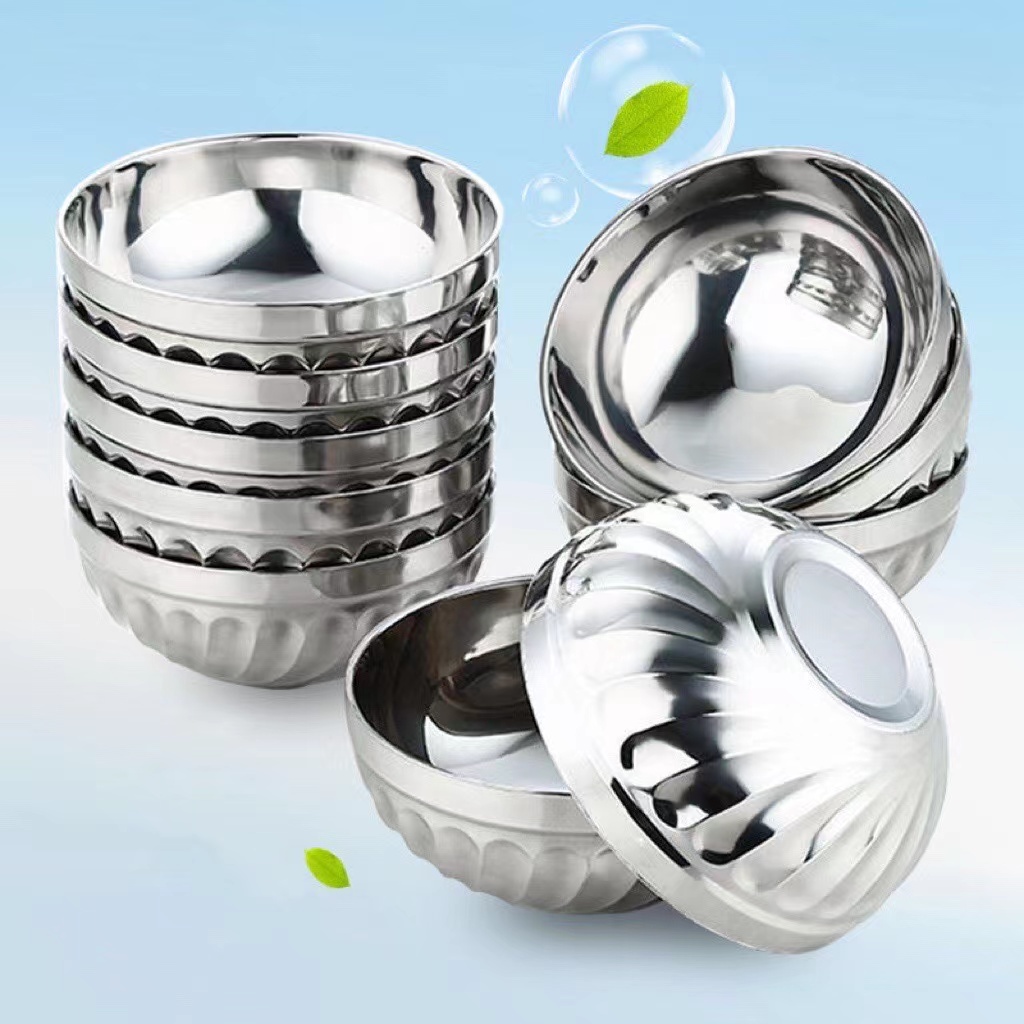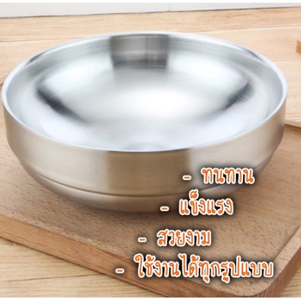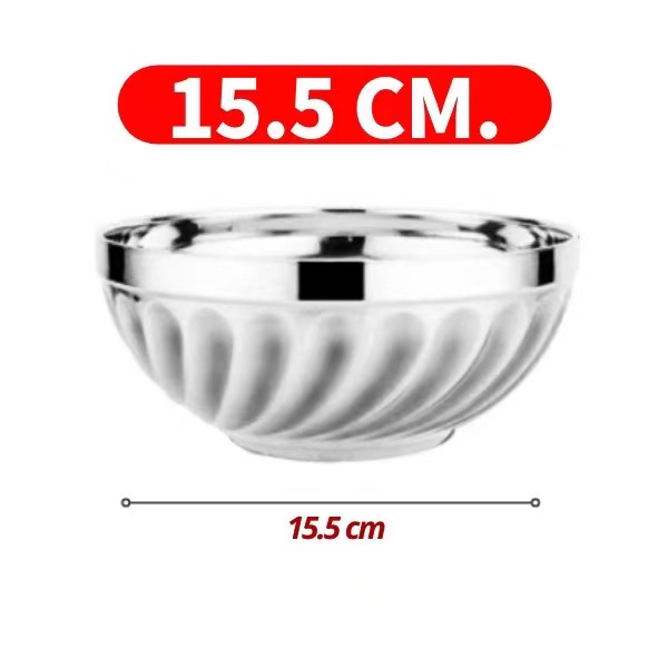 T.C ชามสแตนเลส ถ้วยสแตนเลส หนาสองชั้นไม่ร้อน ชามใบใหญ่ ถ้วยใหญ่ ถ้วยชามไหว้เจ้า 不锈钢碗
