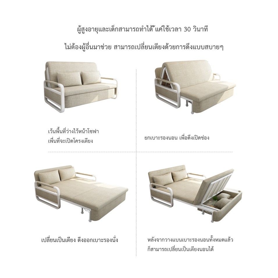 โซฟาปรับนอน โซฟาเบด โซฟาพับนอนด้วยการจัดเก็บประกอบง่าย เตียง4 ฟุต/5ฟุต เตียงโซฟา โซฟาปรับนอนได้ sofa bed