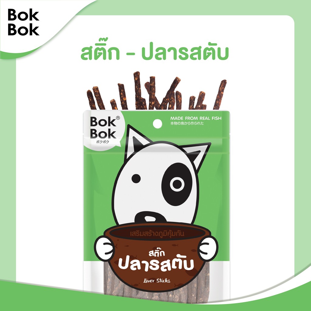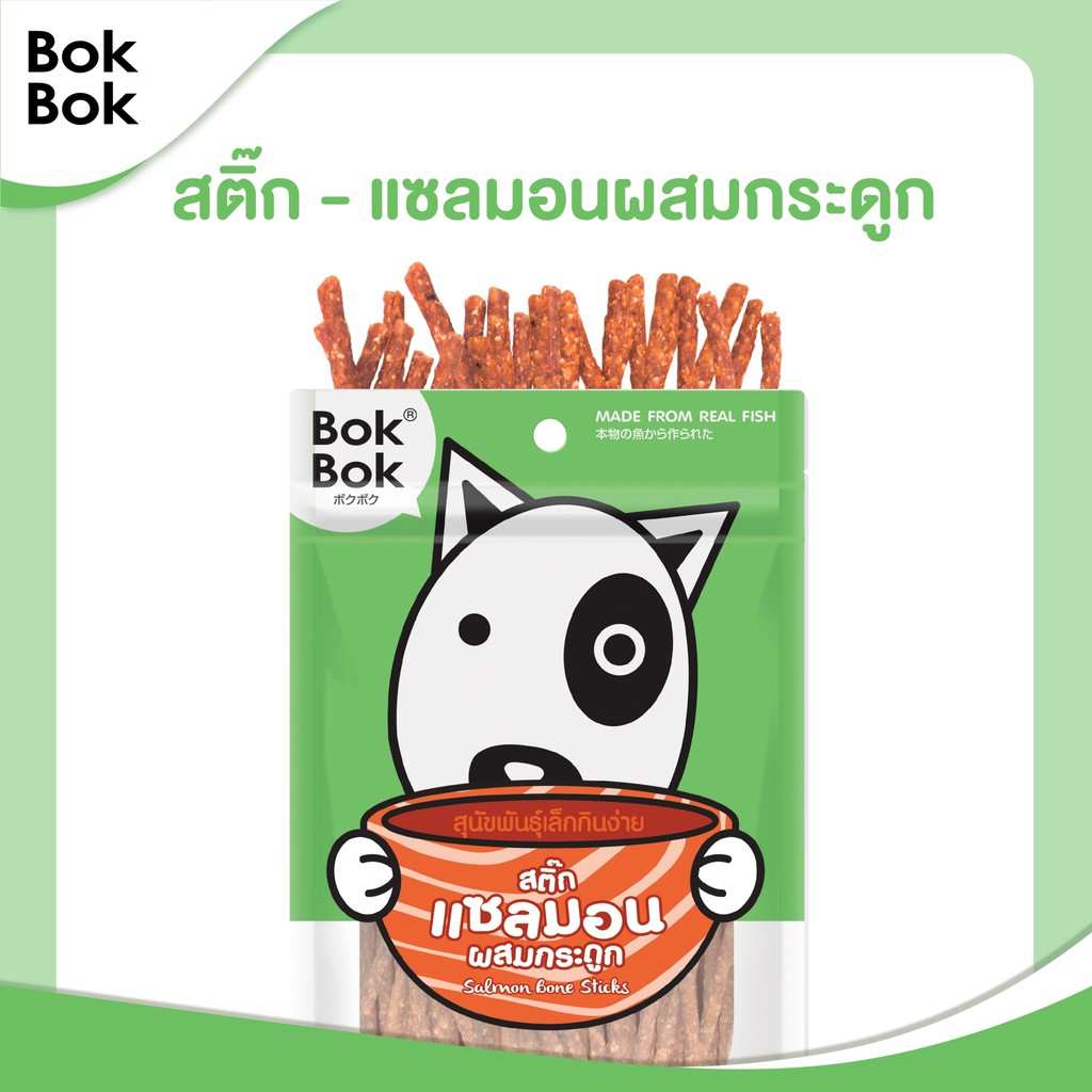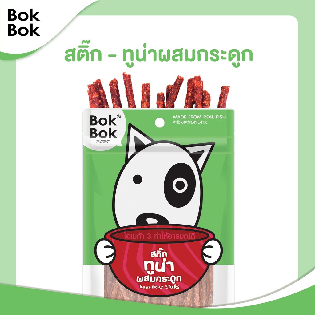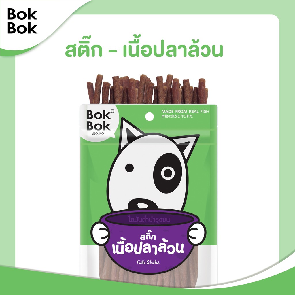 Bok Bok บ๊อกบ๊อก ขนมสัตว์เลี้ยง หมา ขนมหมา สติ๊กเนื้อปลา 50 กรัม 1 ซอง ไขมันต่ำ บำรุงขน ทำจากเนื้อปลา แพ้ไก่กินได้