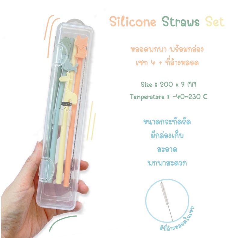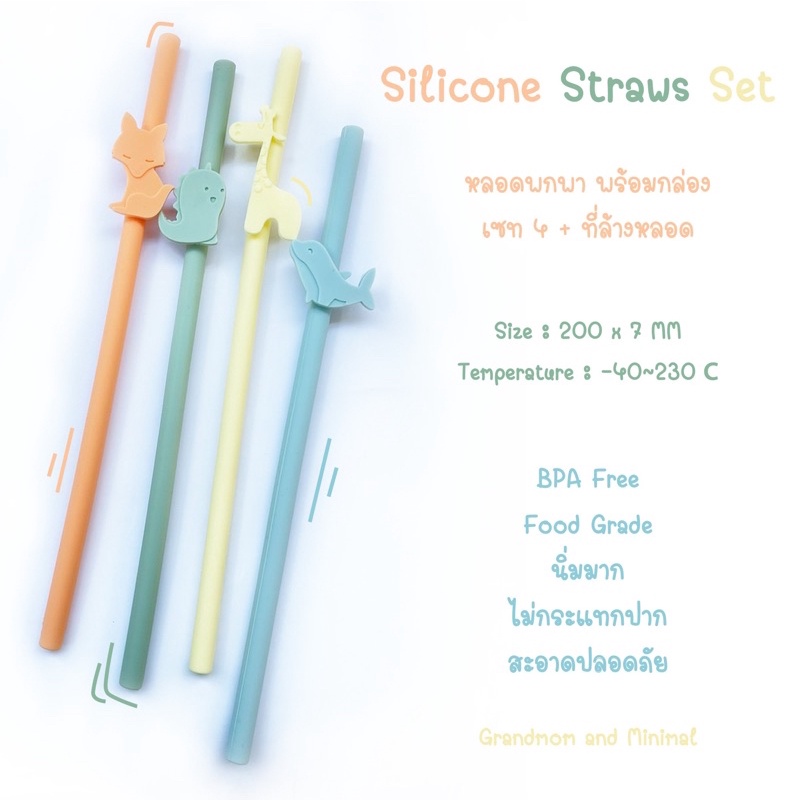 หลอดซิลิโคนเด็ก พกพา พร้อมกล่อง Grandmom (แกรนด์มัม)