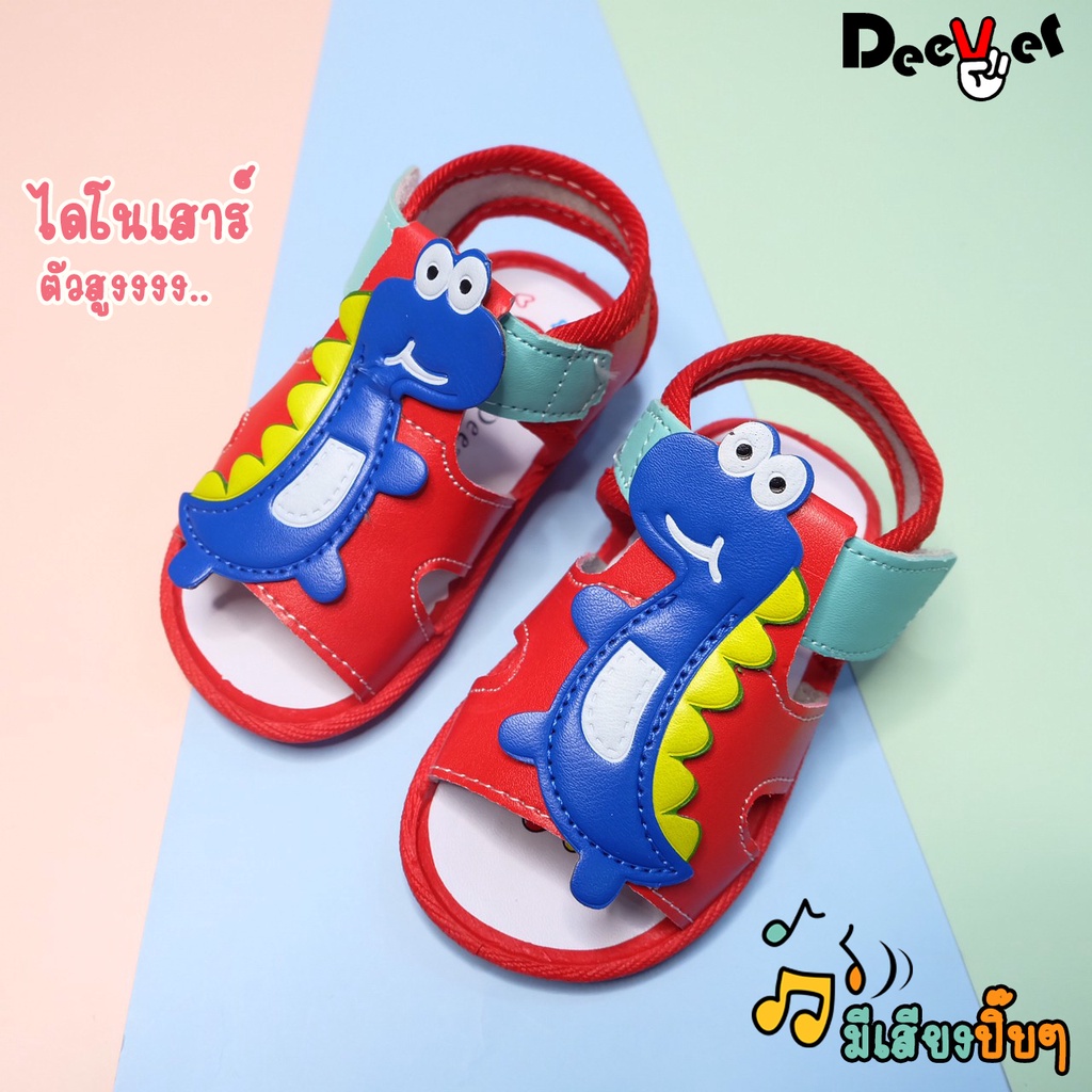 รองเท้าเด็กรัดส้นมีเสียงหน้าไดโนเสาร์ พร้อมส่งจากไทย !!!