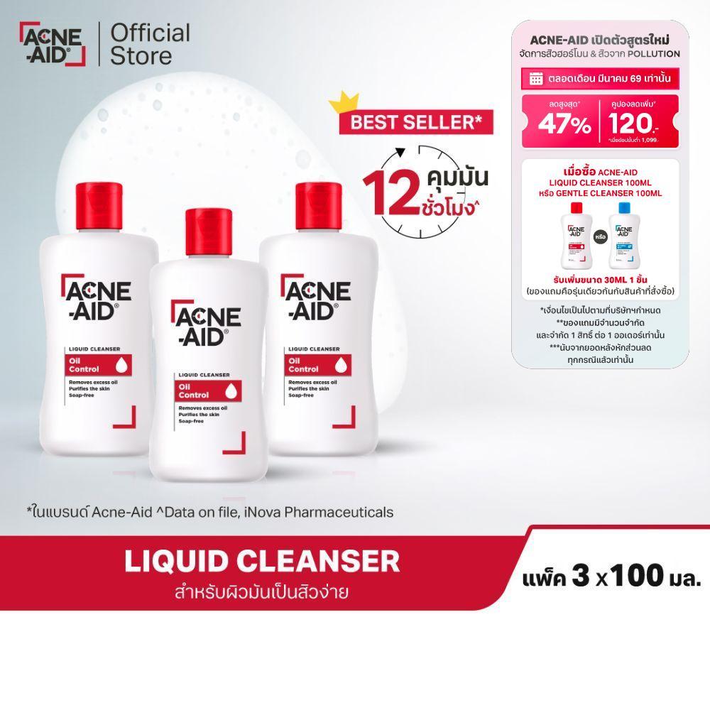 [ส่งฟรี] ACNE-AID LIQUID CLEANSER 100 ML x 3 แอคเน่-เอด ลิควิด เคลนเซอร์ สำหรับผิวมัน เป็นสิวง่าย 100 มล X3