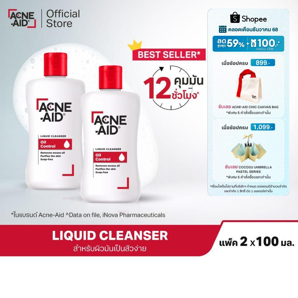 [ส่งฟรี] ACNE-AID LIQUID CLEANSER 100 ML x2 แอคเน่-เอด ลิควิด เคลนเซอร์ สำหรับผิวมัน เป็นสิวง่าย 100 มล x2